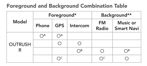 The volume of the foreground audio is adjusted using the BT system and the volume of the background audio can be adjusted using settings under the Sena Utility App – specifically the ‘Background Volume setting with its 0 to 9 increments. Note – HD Intercom and Audio Source Priority feature are temporarily disabled when Audio Multitasking is enabled.