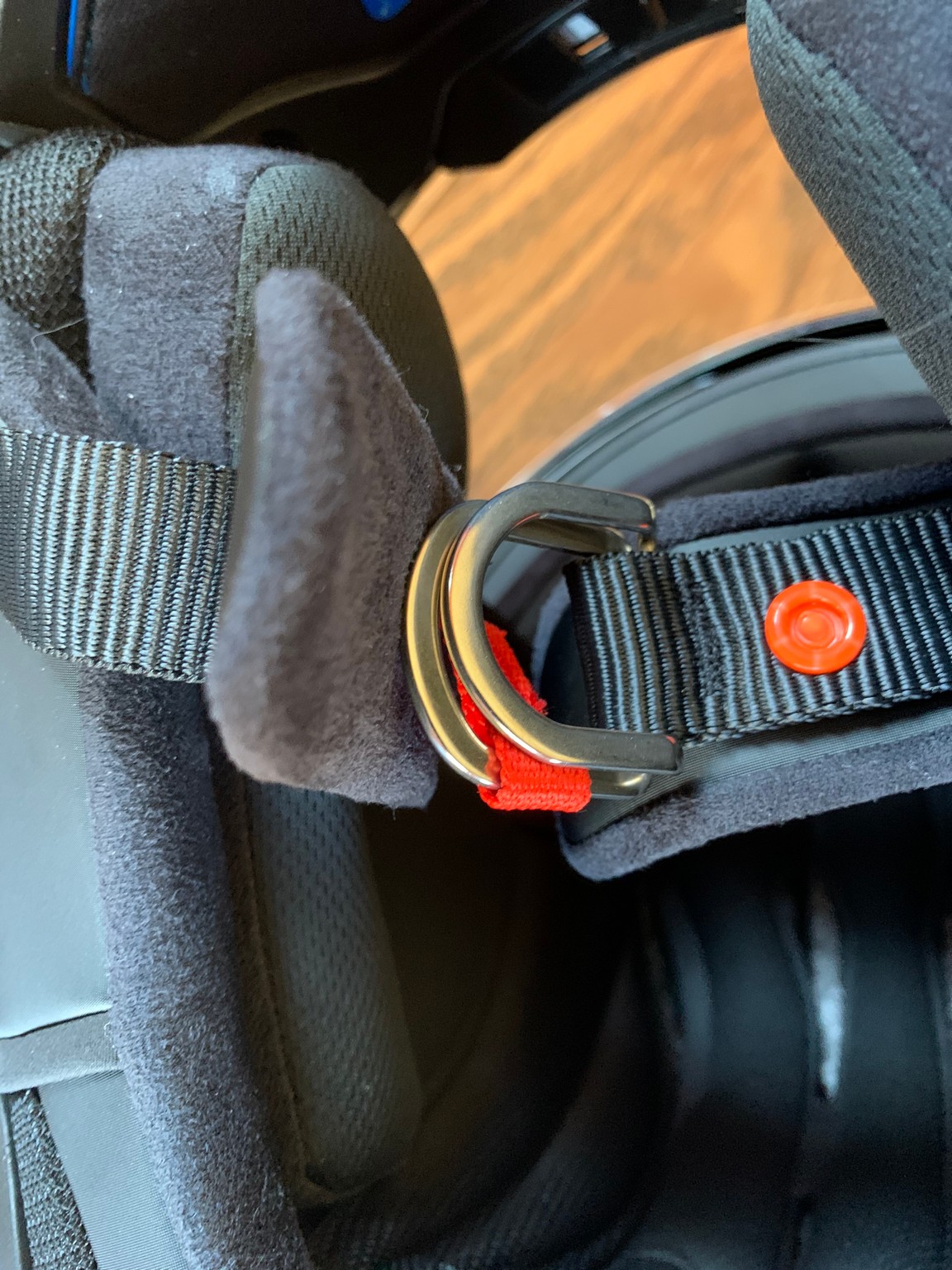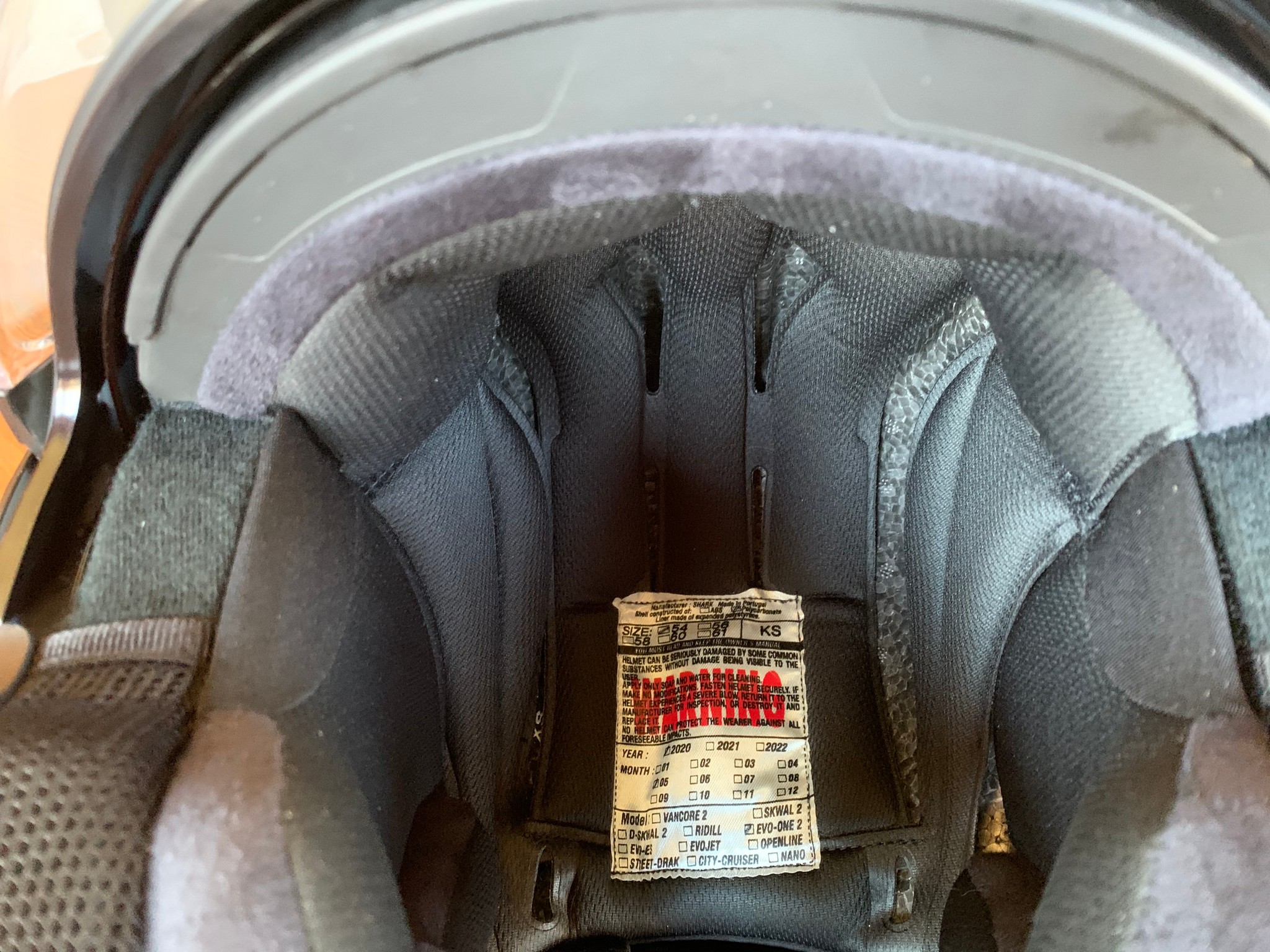 Almost all helmets these days have a removable, washable liner and the EVO is no different. It attaches with bright orange snaps that are easy to find and click in with authority. The liner itself is CoolMax and has a subtle 3D texture that should help it feel less sticky when the temps and humidity soar. Air channels reveal the gray expanded polystyrene underneath. The lining has large pockets for speakers that open to the front of the helmet and close with velcro. Inside is a recess that fits my SENA speakers like it was made for them.