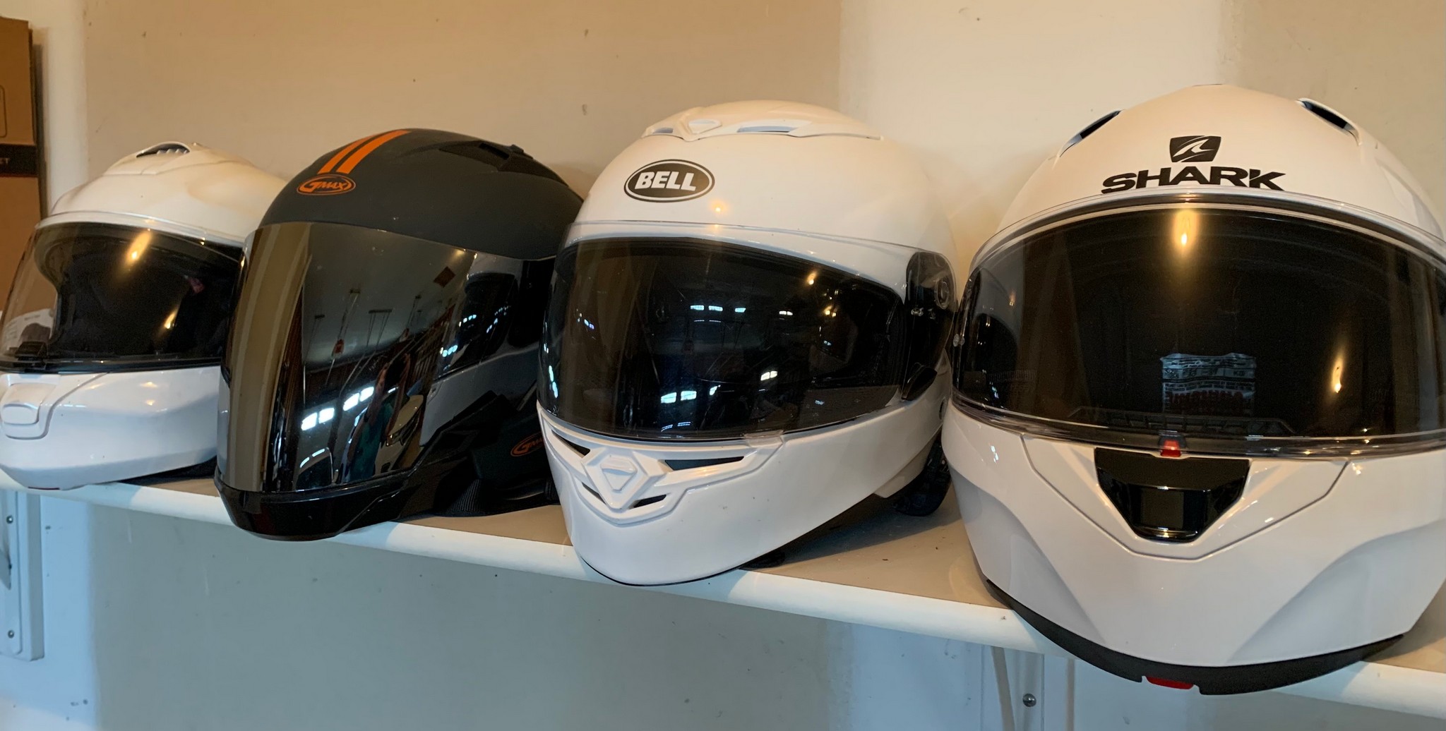 It has an LED brake light in the back for safety in heavy traffic and a mirrored face shield that makes me look tough. For weekend rides around the countryside, I wear my Bell RS-2 helmet because it’s the most comfortable and for long distance riding I wear my RPHA 10 flip-up because it’s convenient and quiet.