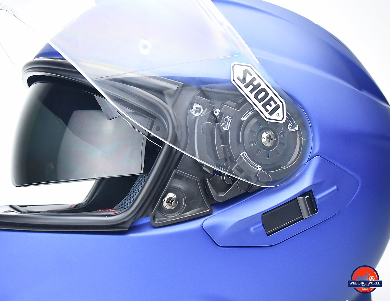 No problem doing the switcheroo thanks in part to the user-friendly latching system Shoei uses on their helmets. It appears they didn’t change the visor or hinge design from the old helmet to the new save for the added extra branding I previously mentioned.