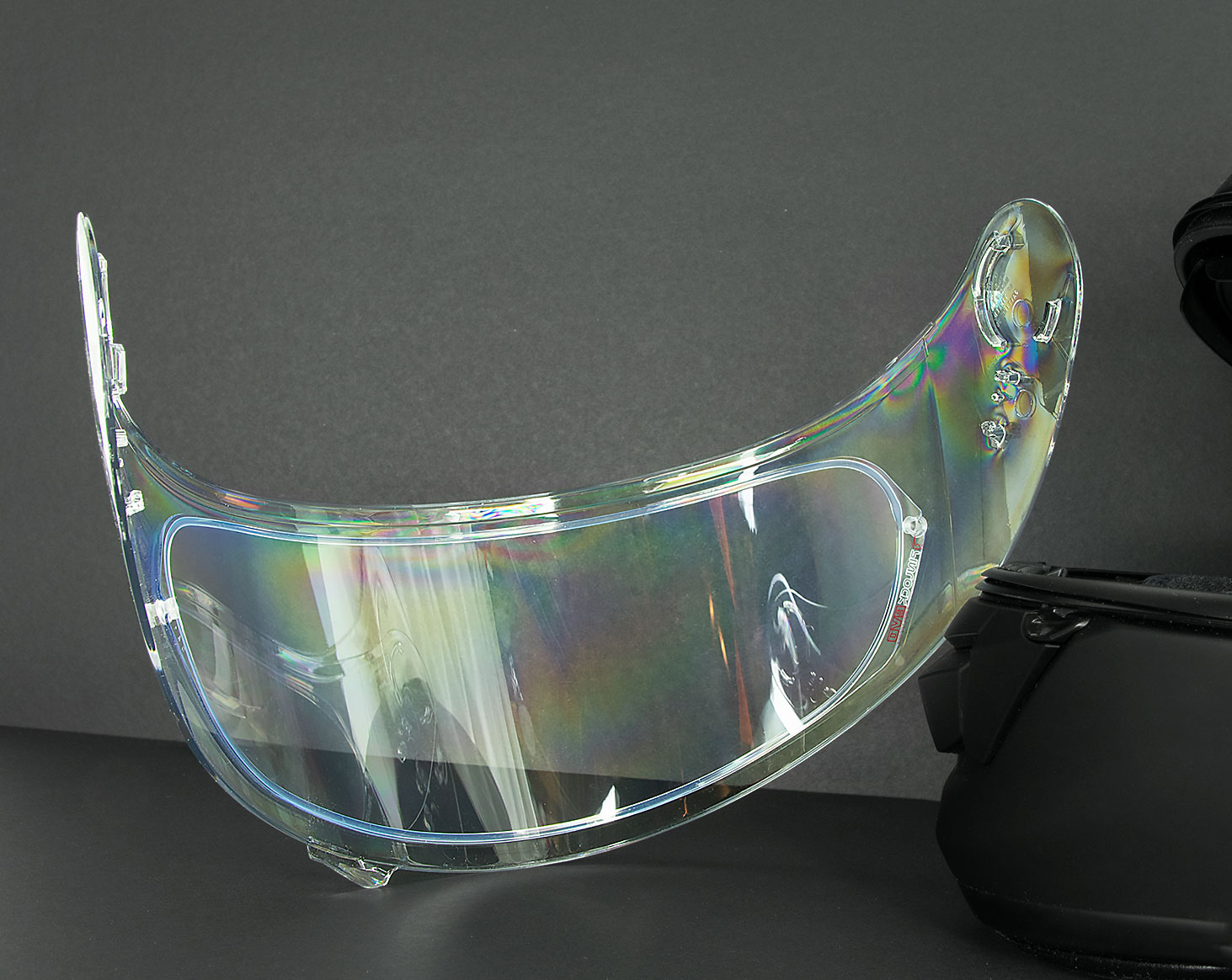 You’ve probably noticed the rainbow colors captured in some of the photos of the visor by now. It’s likely a chemical coating that makes it slippery for lack of a better word.