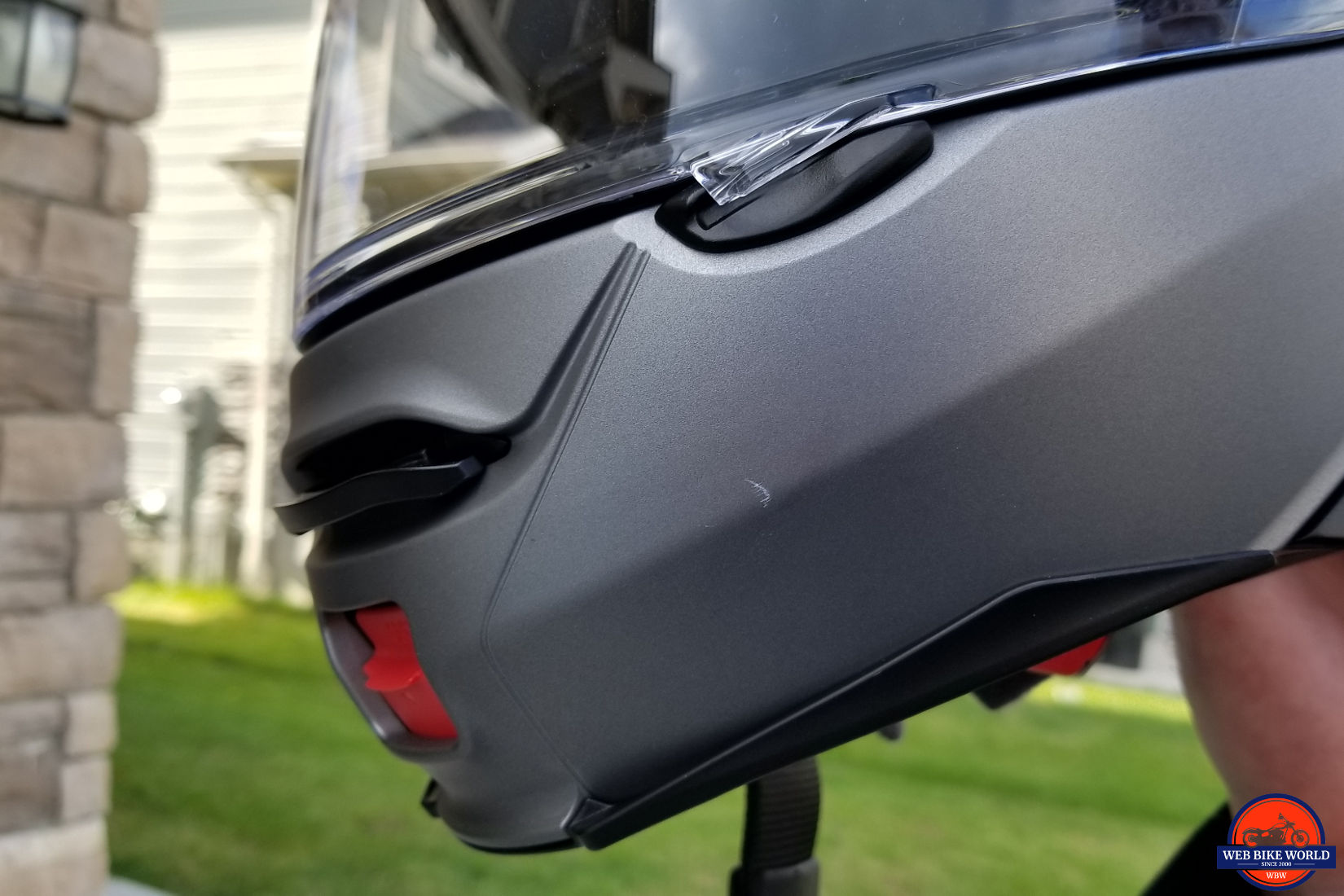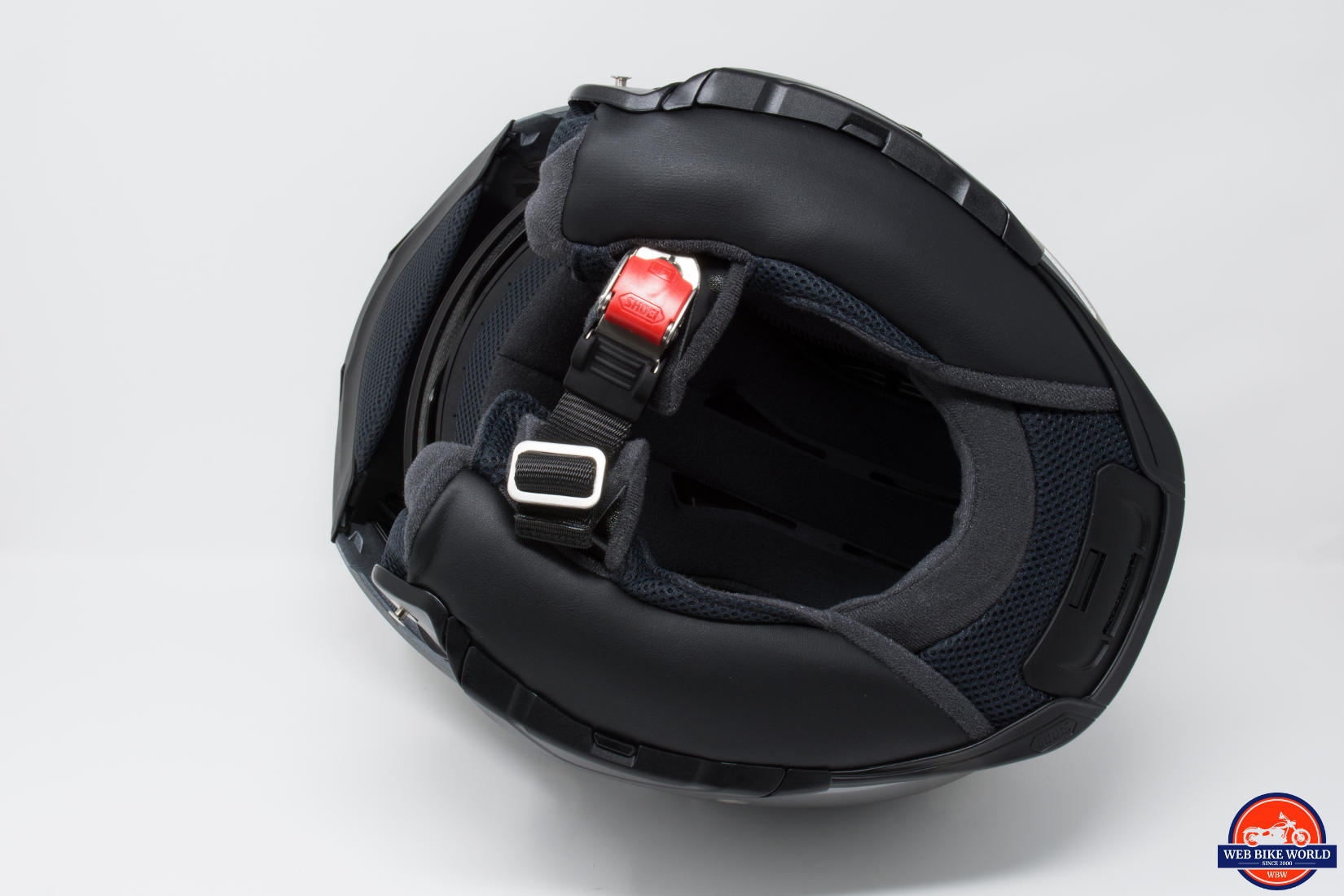Shoei is using a micro-ratchet strap on the Neotec II. Unfortunately, I was never able to get the micro-ratchet strap as comfortable as I’d like. As a result, it always sort of pressed into my neck whenever I was looking down. At first I thought it was how I had it set up, and so I tried reconfiguring the lead given to mechanism, but I was only able to make it less uncomfortable as opposed to eliminating the discomfort entirely.
