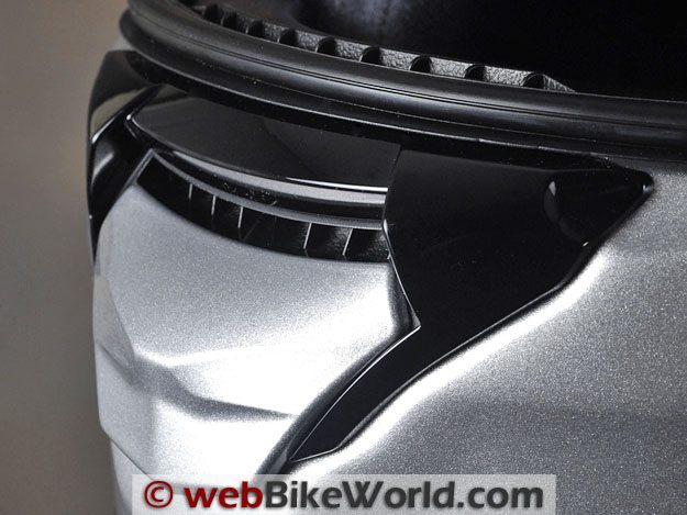 The chin vent uses a very positive-feeling cover that clicks open and closed. It directs air through the top of the chin bar only; the Qwest has no vents through the chin bar itself.