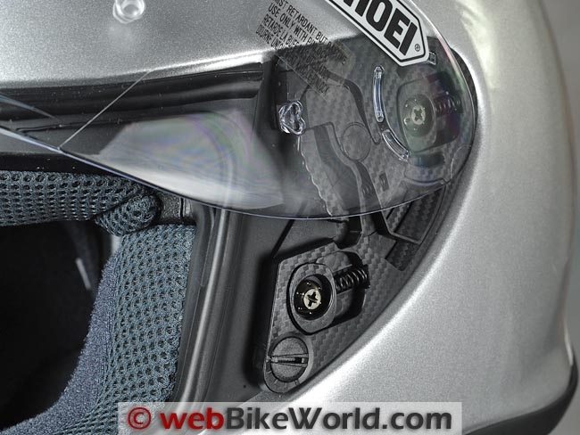The face shield quality helps and it feels very solid and tight. Shoei designed a new CWR-1 face shield for the RF-1200, along with a new QR-E base plate system to hold the face shield in place and tight against the also-new eye port gasket.