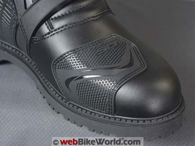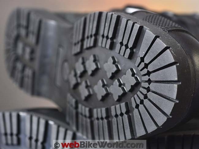 A non-slip and very grippy rubber Vibram sole is used where the boot hits the foot pegs (or the ground as it may be).