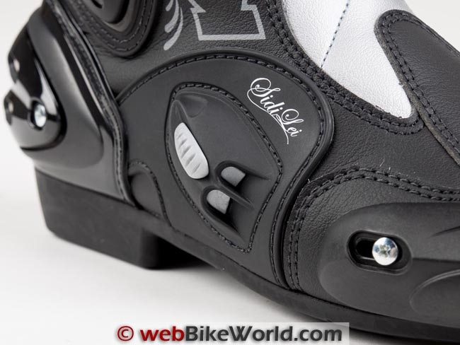 Ankle ball protection cups cover all the ankles. The ankle cups on the lateral side of the boot have an elevated surface of armor while the medial side has a protectors that appears to be flush with the surface of the upper.