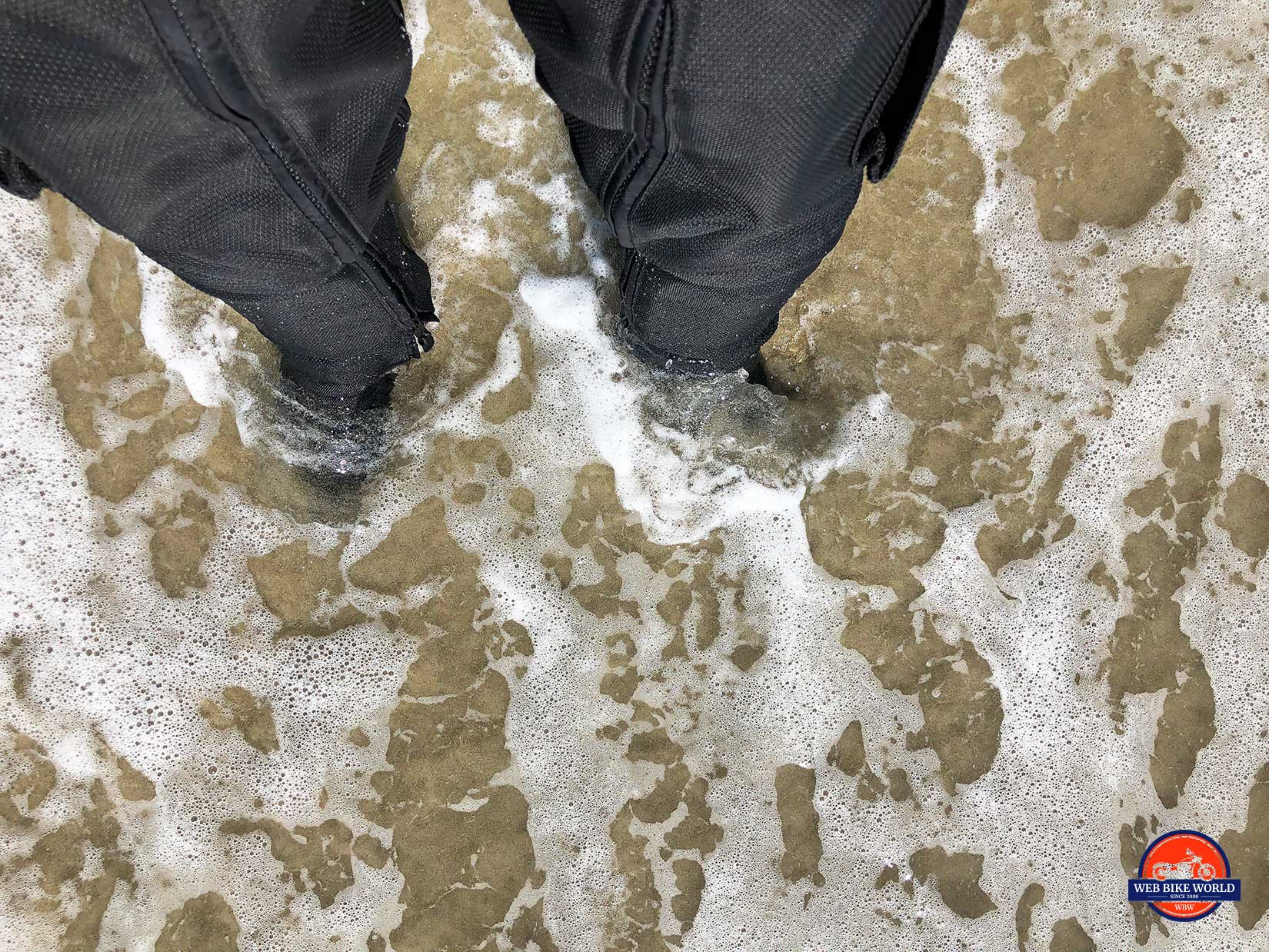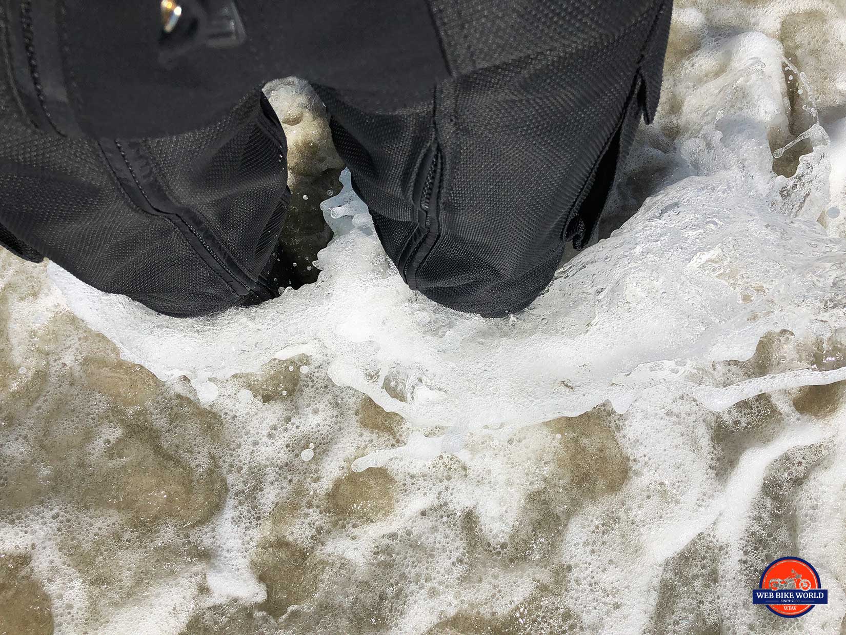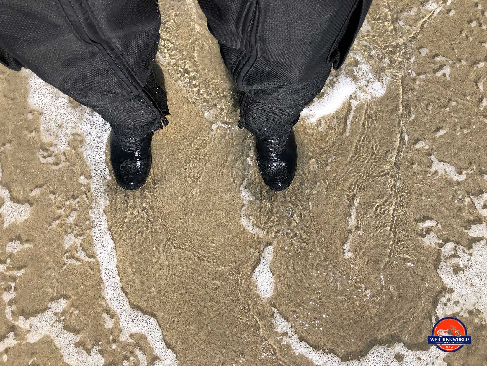 The combination of Gavia boots and Motoport pants stopped all water from entering! Even when they were completely submerged for 5 to 10 seconds at a time while I scrambled to get out of the deep water.