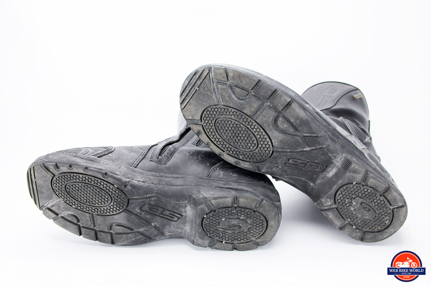 They also don’t wear quickly. As mentioned I now have over 1200 miles of riding time on these boots and I don’t notice any premature wear on the sole. See the after photo below.