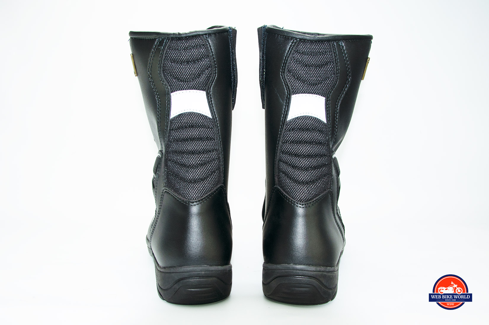 On the back of each boot, there’s a patch of reflective material about 1.5” wide by 1” long. It’s an excellent idea and would work well if you wear your riding pants tucked into your boots.