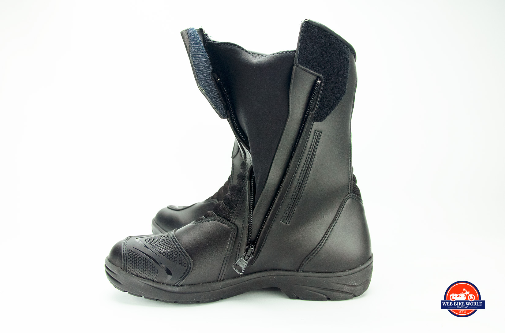 - Velcro and zip closures on the inner ankle/shin of each boot