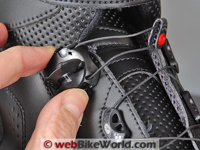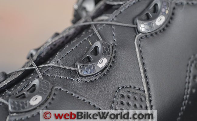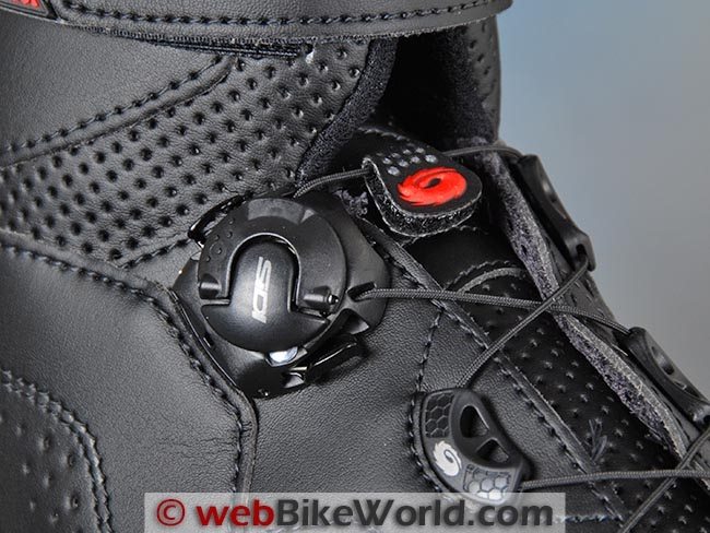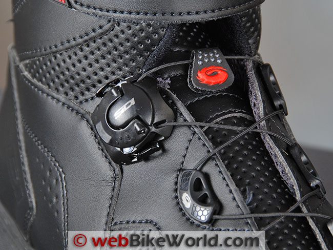 So now we get to the most unique feature of the Sidi Nitro boots: the Sidi Techno 3 closure system. This is the patented lacing system pioneered on the Sidi Vortice boots (review), first reviewed on webBikeWorld when they were introduced in 2008.