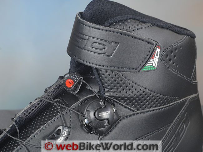 There are plastic inserted disks on either side to protect the ankle bones, although the disks feel softer and smaller in diameter than in other Sidi race-oriented boots. But, they’re better than the ankle protection (or lack thereof) we’ve seen in other, less expensive short motorcycle boots.