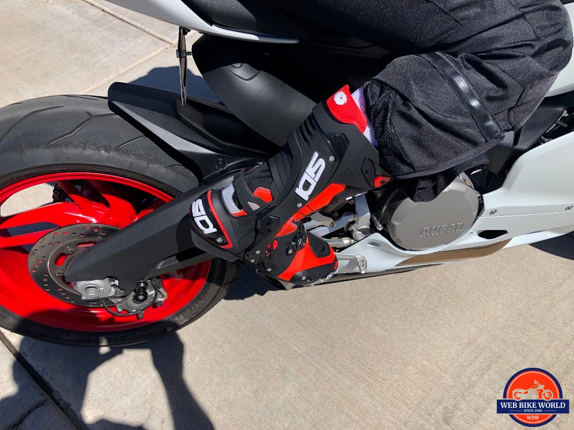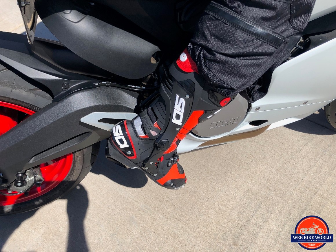 The shape of the boot and the upper kept my foot and ankle in the perfect position and the sole provided a great sense of touch as it came into contact with the pegs. I was really blown away by how well designed these boots are and how quickly I could jump into them and feel an improvement in my riding and in my level of enjoyment of the ride.