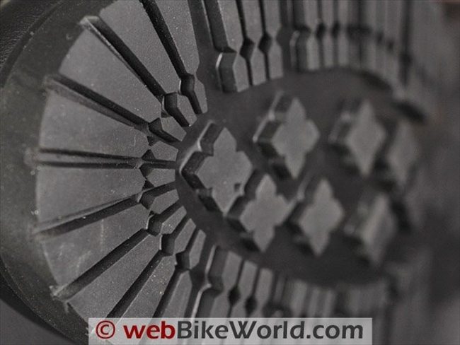 I think part of that comfortable and familiar feeling is because I’m used to the feel of this type of sole in my street work boots. The lugs “give” slightly when walking to cushion the shock and they also provide very excellent grip both on and off the bike.