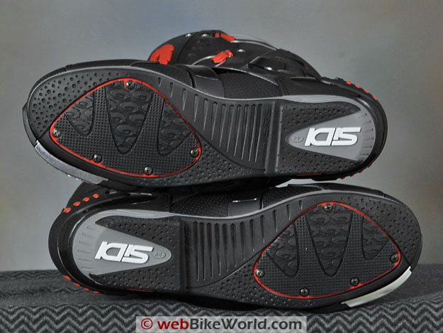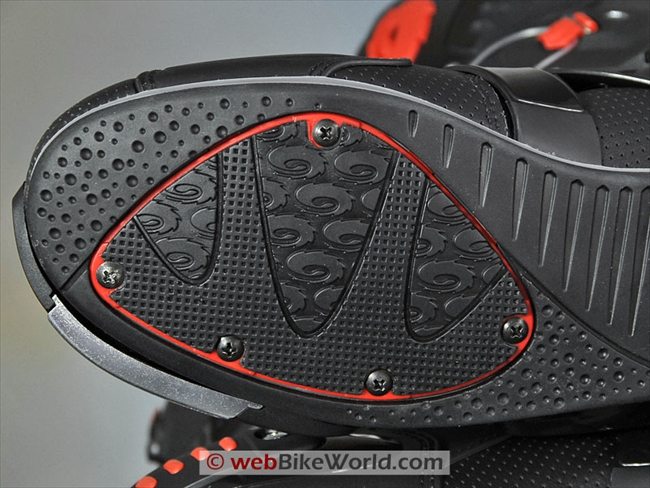 This even goes for the soles, as you can see in the photo directly above. The section of sole that gets the most wear from the foot pegs is attached with Phillips head screws and can be replaced.