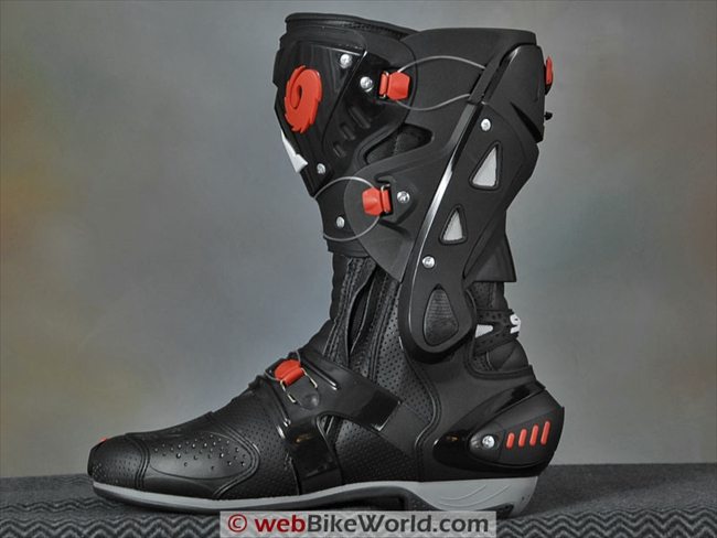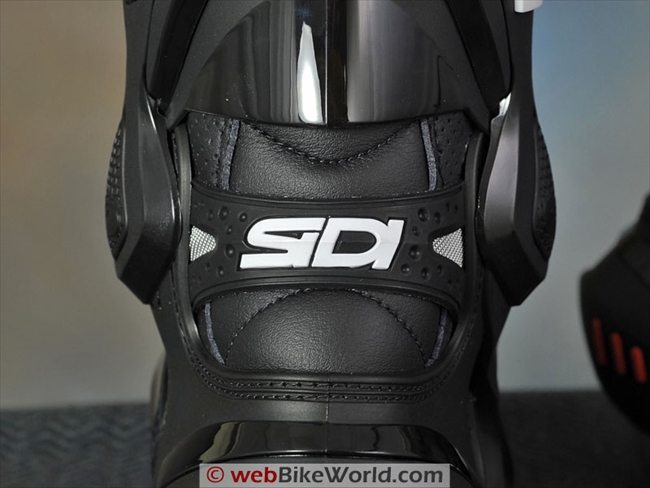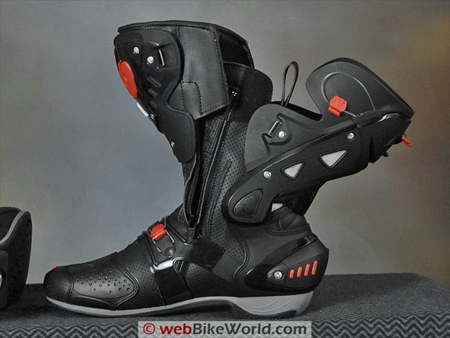 Also, the Vortice boots have mesh-covered panels in back of the external calf protector, with corresponding perforations inside of the hard material.