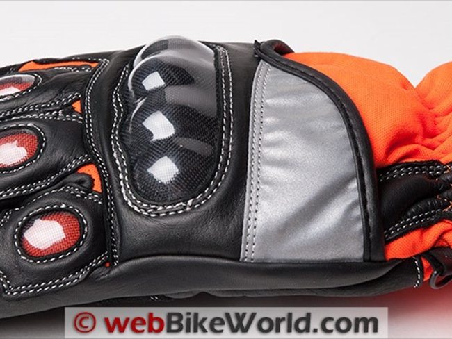 In addition to the Hi-Viz color on the textile portion of the gloves, a patch of reflective material has been added for increased low-light visibility.