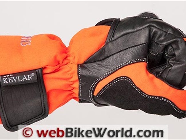 While it keeps the wind from flowing much up into the glove, it does little to prevent the gloves sliding off the hand when tugged. This can be a liability in a crash.