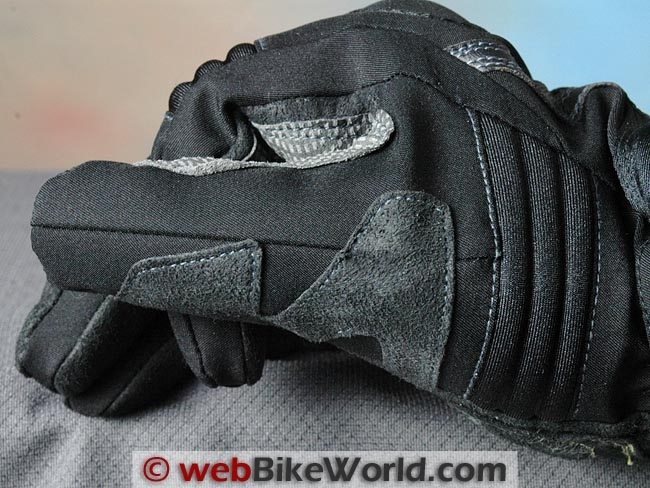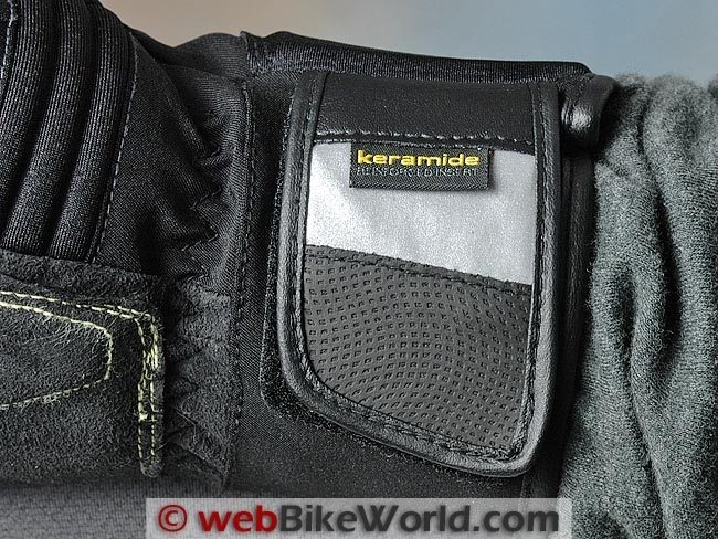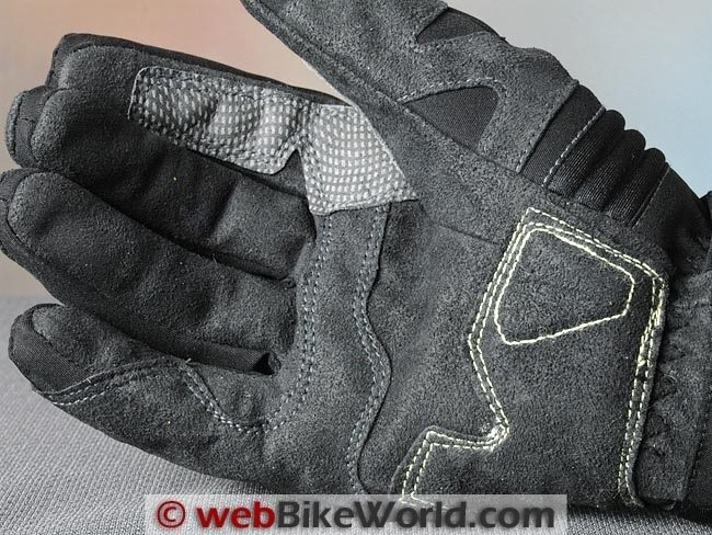 Spidi says there’s a product called “Keramide” used somewhere on the gloves; I can only assume it’s the extra section of checkerboard-look material sewn between the thumb and forefinger.
