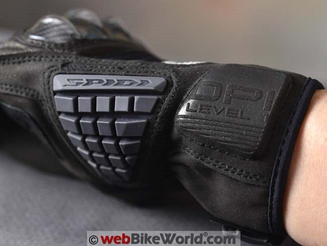 I mentioned earlier about the “waffle-ized” slider on the outside of the wrist, made from soft polyurethane, along with the foam square impact protector behind that on the outside of the wrist.