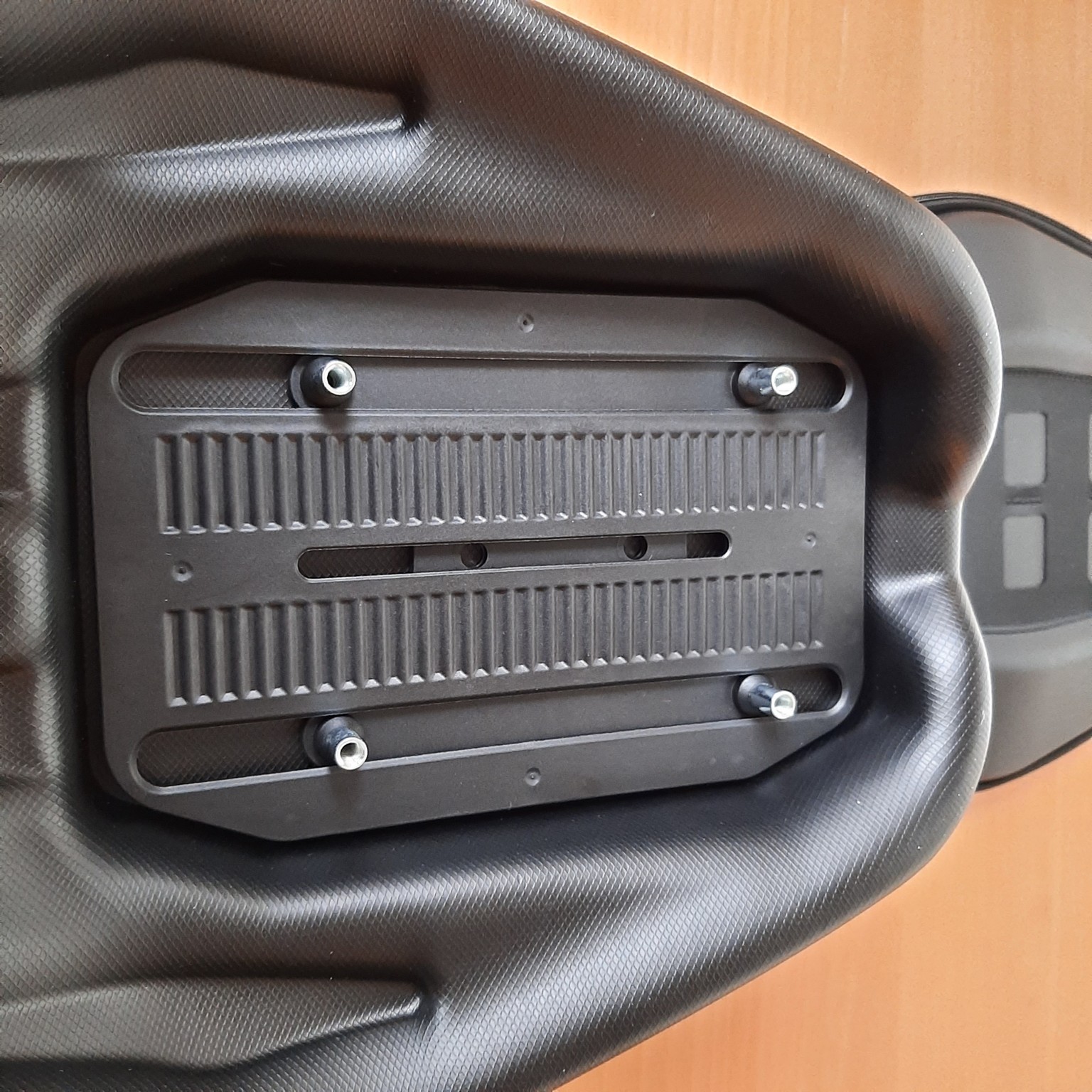 But if not wanting to install anything over top of the OE plastic or metal, an optional height increase kit is available. This kit has a 6mm thick spacer plate fitted between the fixed adjustment plate and the removable adjustment plate of the tank bag assembly. The PN for this kit is TRT.00.787.10100/B, for $8.95 USD + shipping).