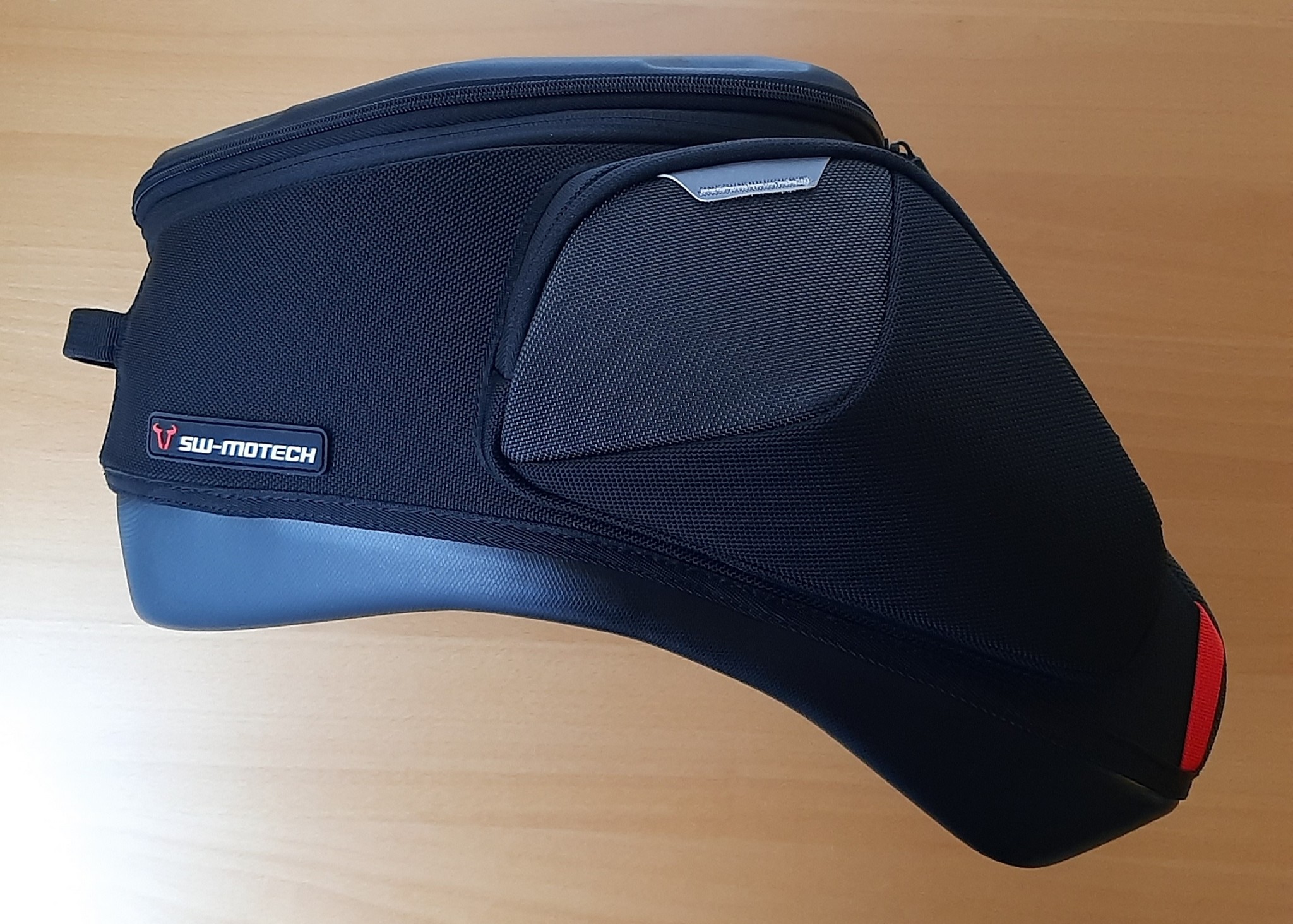 In never doubting that the SW-MOTECH tank bags are well designed, well built and very functional the preference for or inclination to utilize a tank harness or strap-mounted solution for many riding activities is still there; but on the other hand, keeping the luggage-sized carry-on known as the PRO GS Tank Bag will be just the ticket for both near and far travels.
