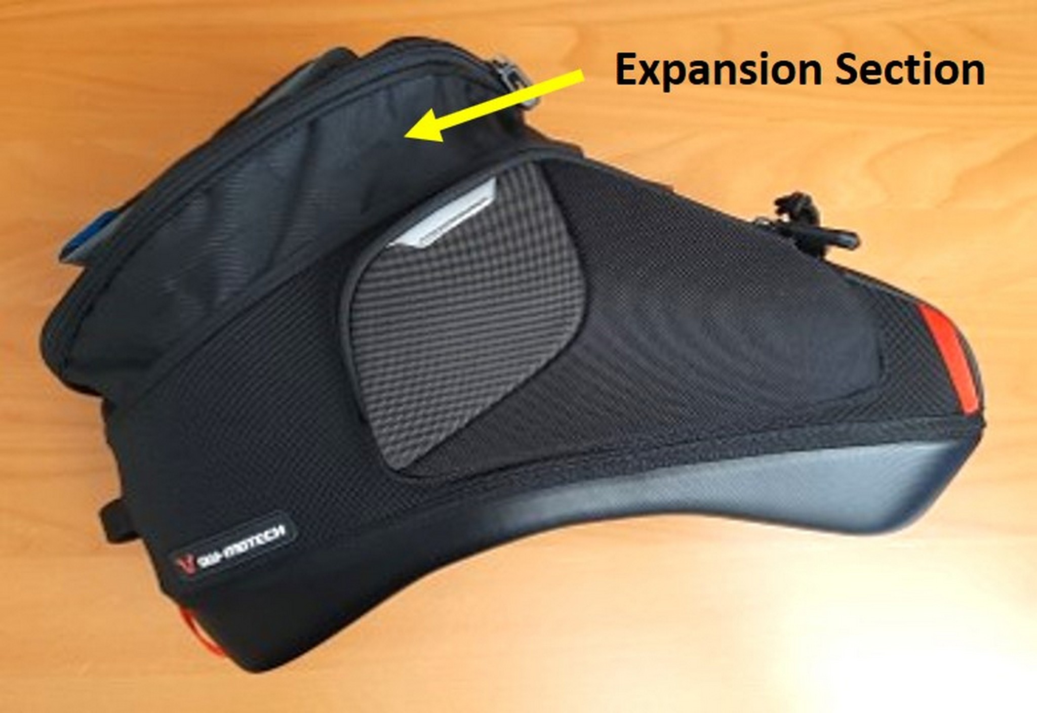 And it is indeed the top-of-the-line item in the new PRO tank bag series – both visually and functionally, with a nominal 16 litres of storage in the main compartment and the ability to be expanded up to 20 litres+ using the adjustable zipper.