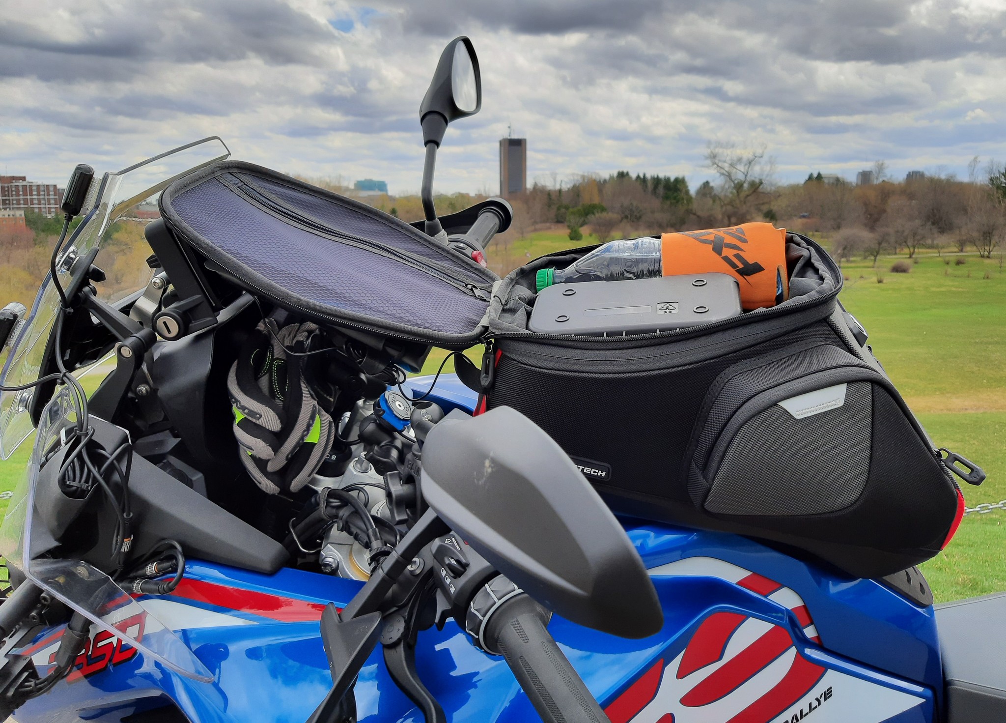 And since day one of this season’s riding, the SW-MOTECH PRO GS Tank Bag, securely engaged on its PRO Tank Ring perch has been along for the riding; and until such time as some more serious off-roading is possible, the big ADV-travel sized tank bag will stay just where it is, although it will also be ported over to the R1250GS when needed.