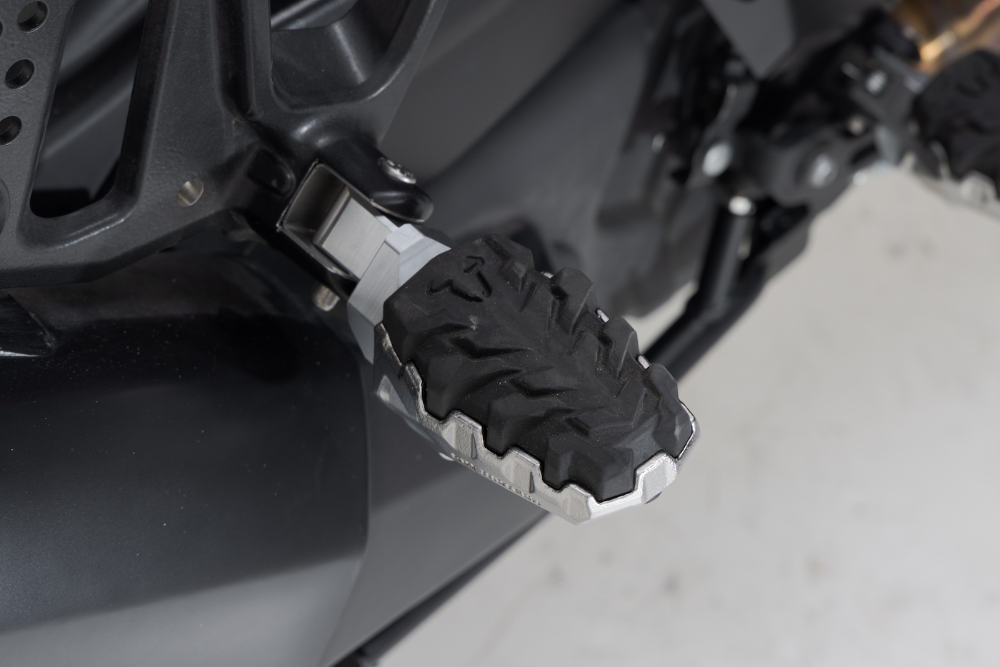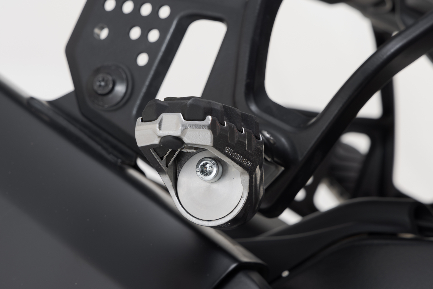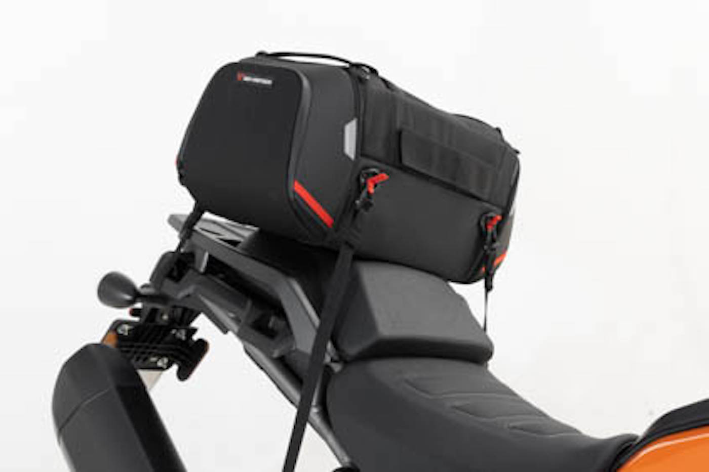 An inventive system that uses a Fidlock magnet system to guide the mechanically locking rings into alignment, SWMotech’s Tank Ring System was designed to make the Pan America more compatible with a larger range of bags.