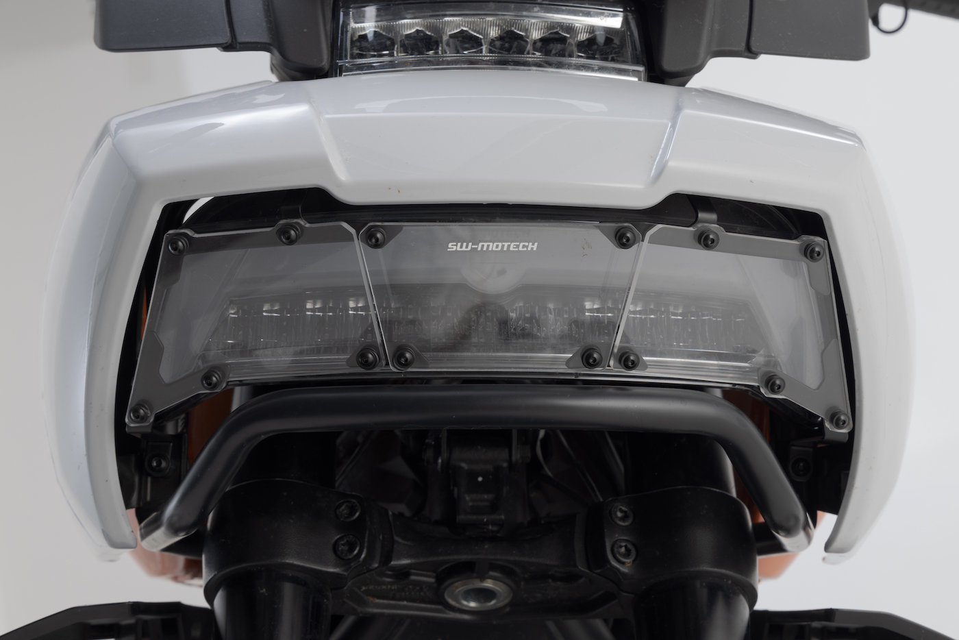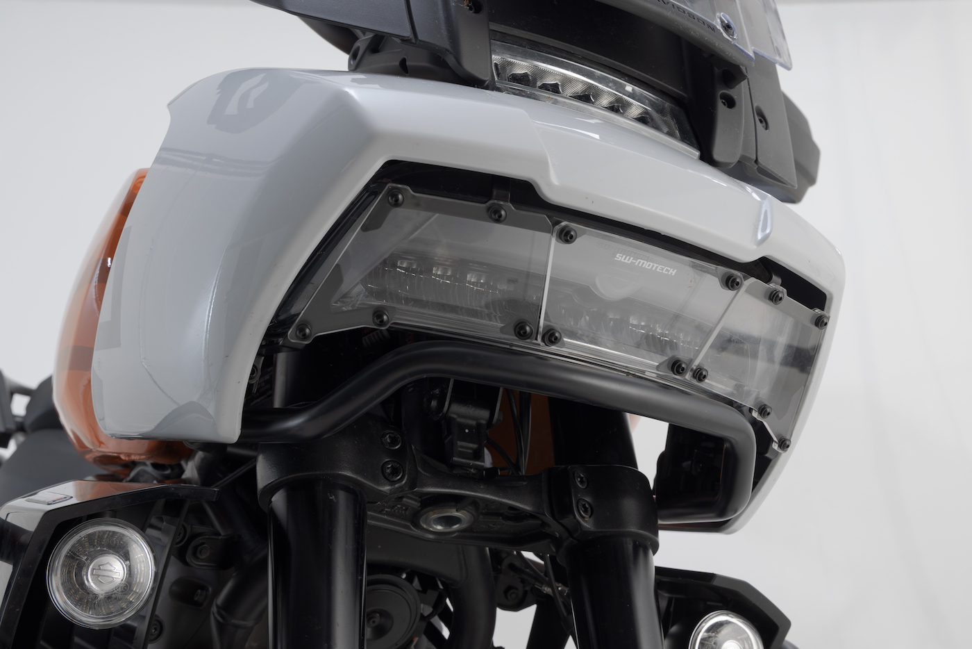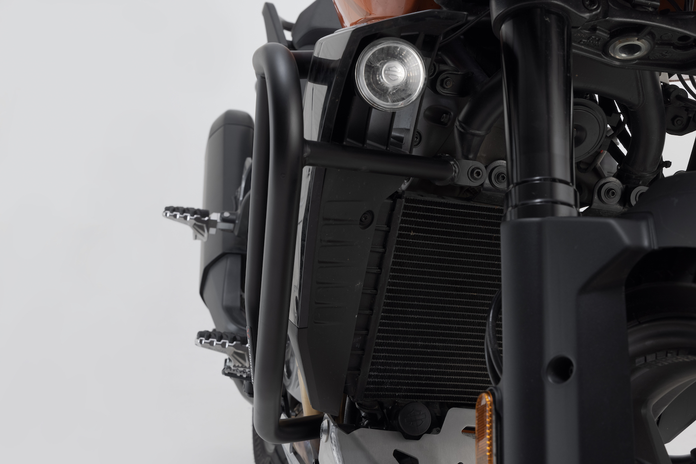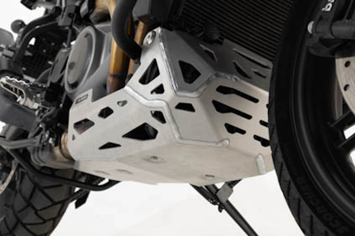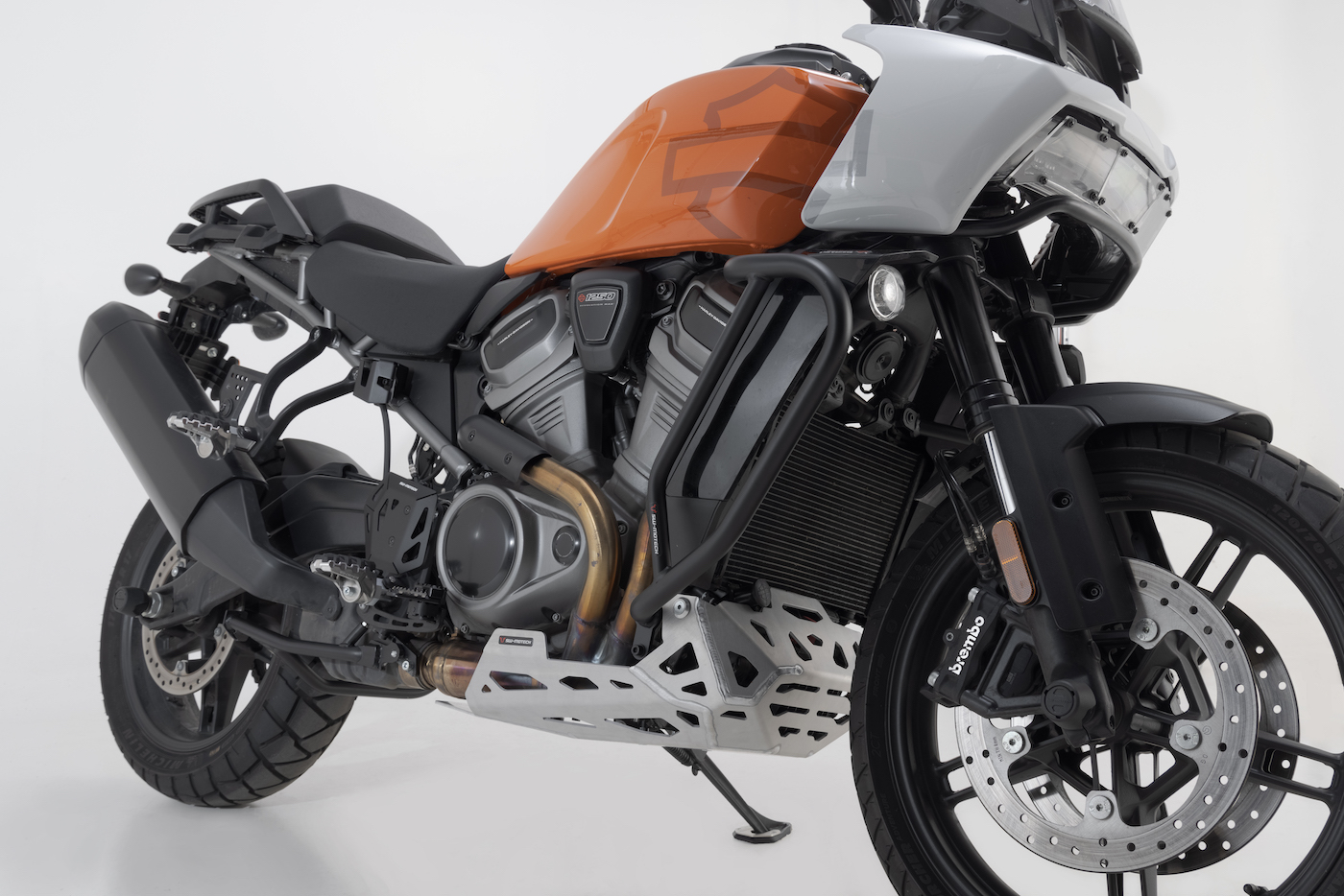 This protection for the Pan America features 27 mm (1 inch) top-notch steel for the main bar (22 mm or 7/8 inch for the support arms) and also is a stand-in as an attachment point for other accessories such as the DryBag 80 or EVO lighting upgrades.