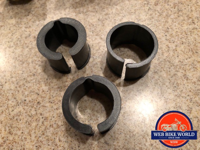 When I look at a website or open an instruction sheet and read, “EASY 2 MIN INSTALLATION”, I am always very skeptical. But in the case of the Tackform Enduro mounting system, that promise is very accurate. The box contains three ABS cushion bushing to protect the handlebar of your bike and to create a secure fit of the aluminum clamp.