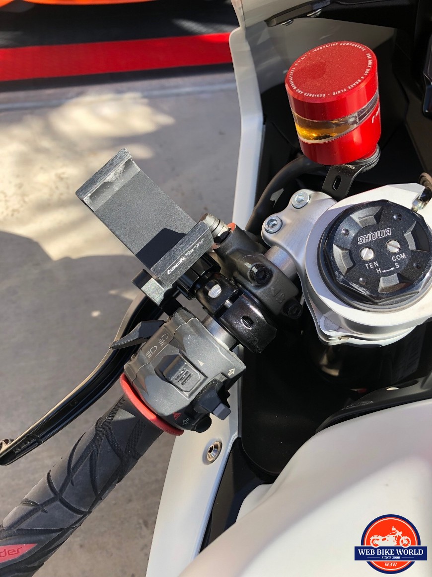The only challenge that I noticed was that with a sportbike, it was a bit more challenging to locate the mount. The handlebar on a sportbike is pretty compact so installation locations were more limited than on some other bike models. In my case, I needed to take some time to find the perfect sport for the mount so that I was not hitting my tank or windscreen when turning.
