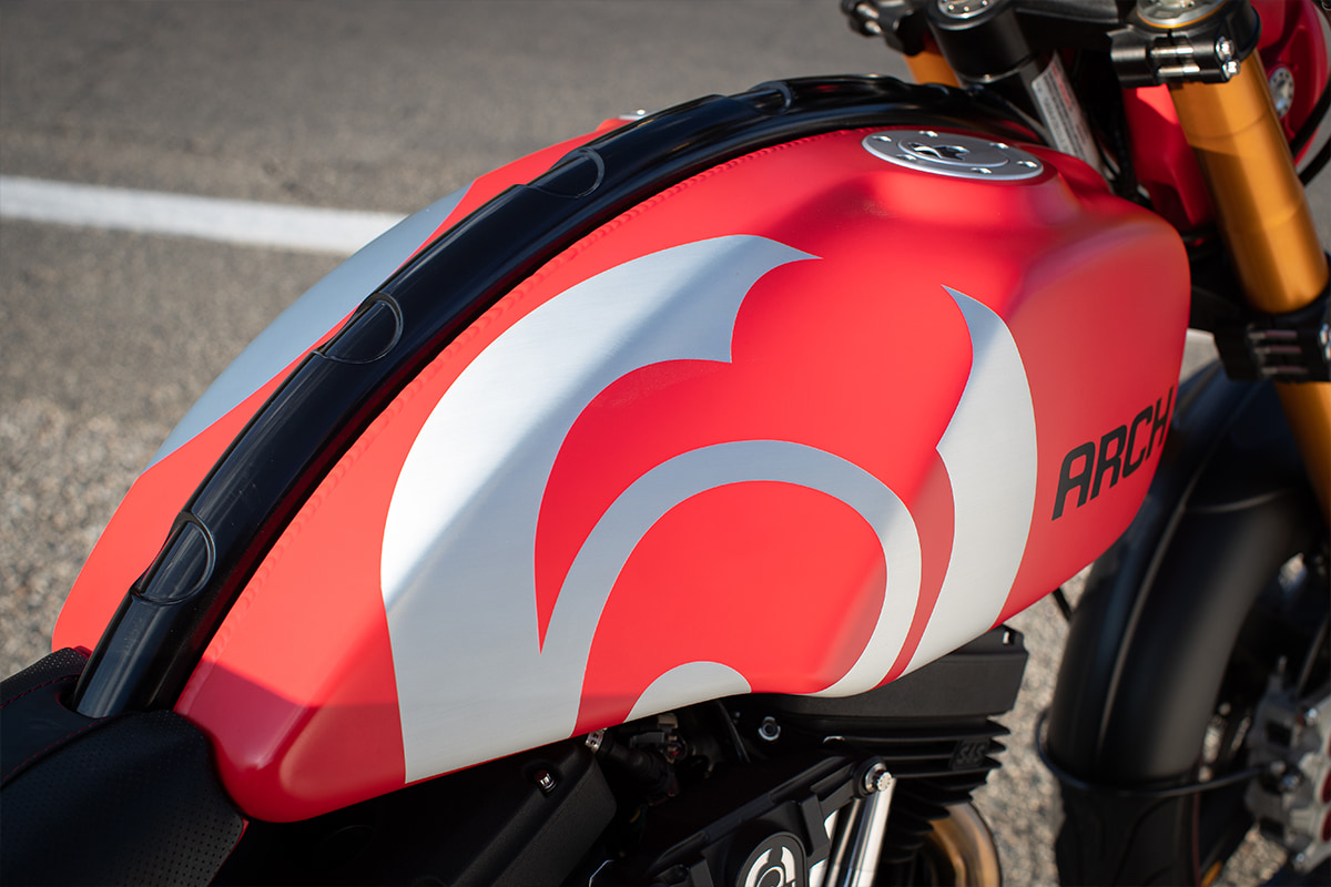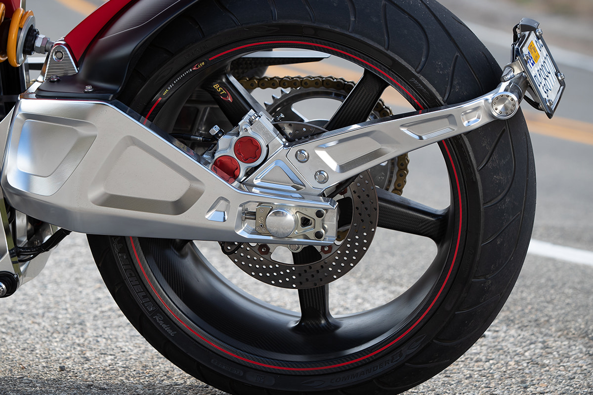 The KRGT-1 as we’ve come to expect from Arch Motorcycles features tons of billet aluminum and titanium throughout the bike. There’s also some carbon fiber and some seriously wonderful craftsmanship here. The motorcycle is a handsome bike, with what looks like superb attention to detail.