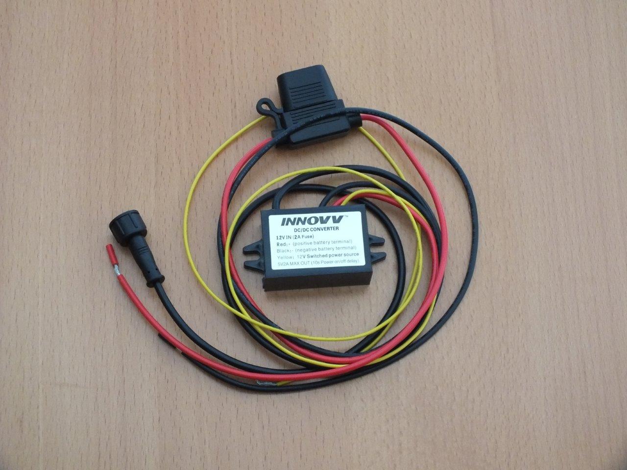 This sealed component is a 12/5V DC converter with some electronic smarts onboard. It provides the proper 5V switched power supply to system components and teams up with the DVR G-Sensor to enable the Park Mode feature described below. The system is lightweight electrically, drawing less than 500mA.