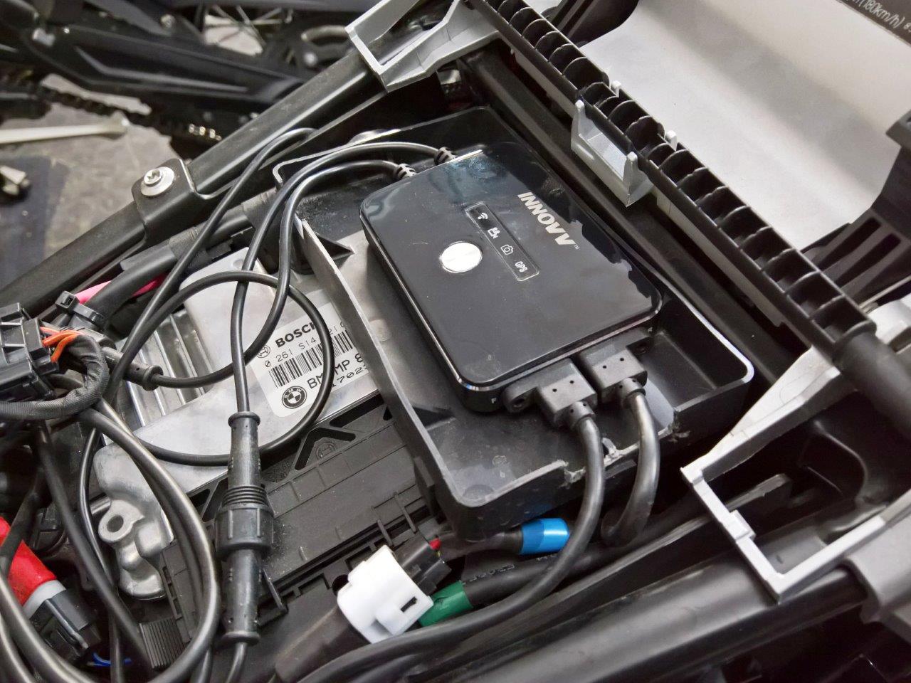 The DVR module sits in a light foam cushion under the front (rider’s) seat section.