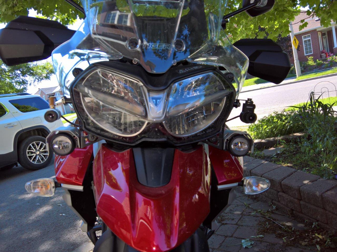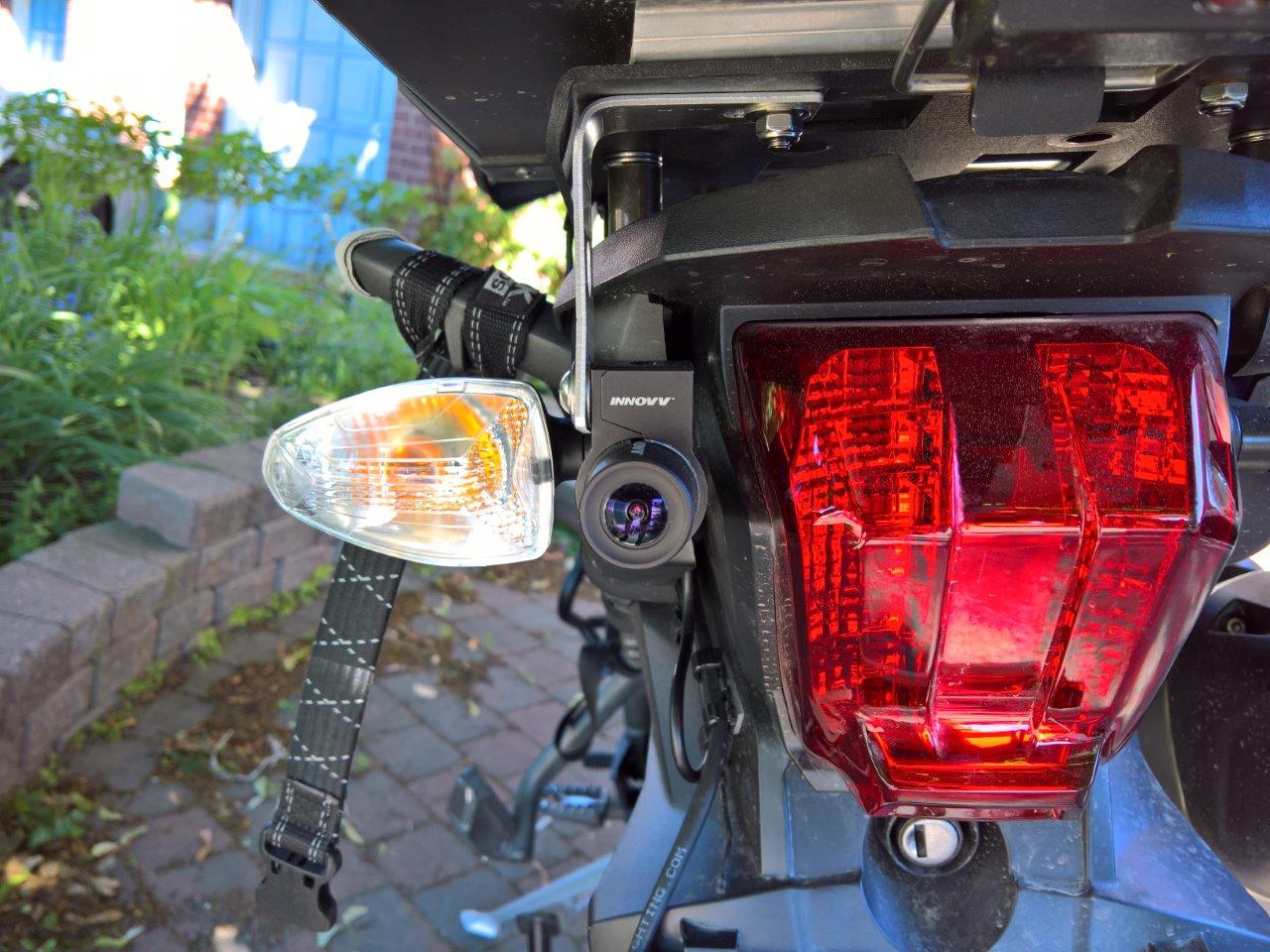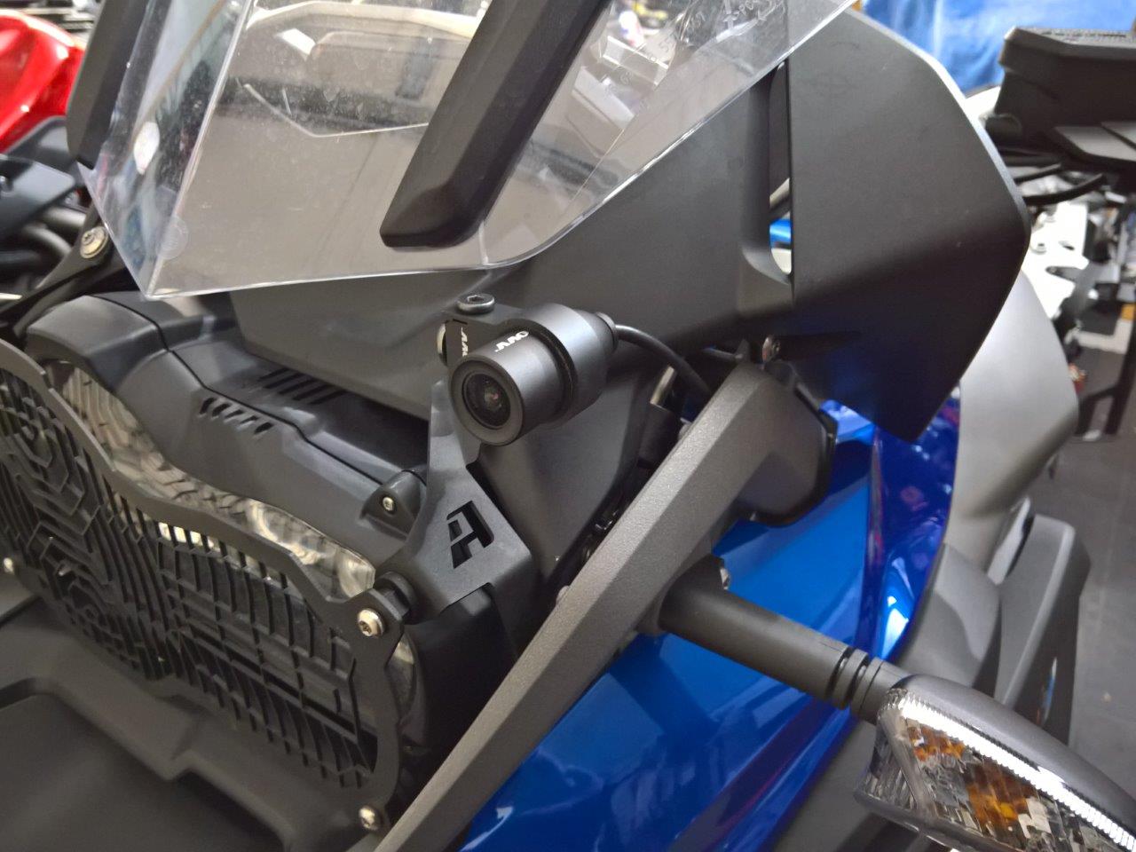 I did test-mount the front module under the upper front fender or beak – it is almost totally hidden from view (as it does with BMW GS models as well) and the overall field of view is limited and, the lens gets dirty quickly.