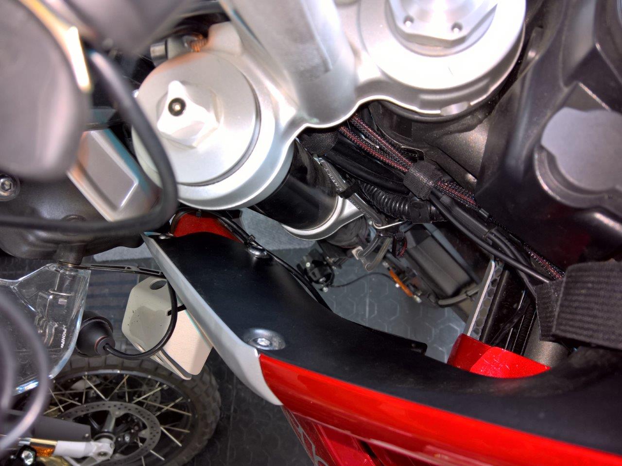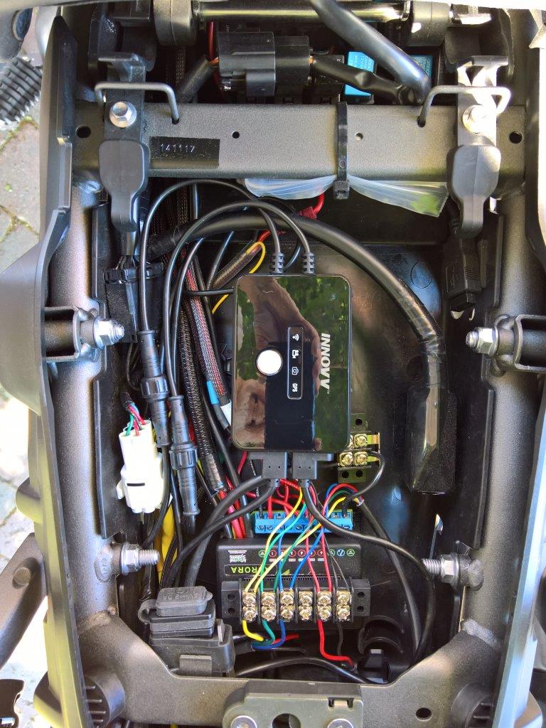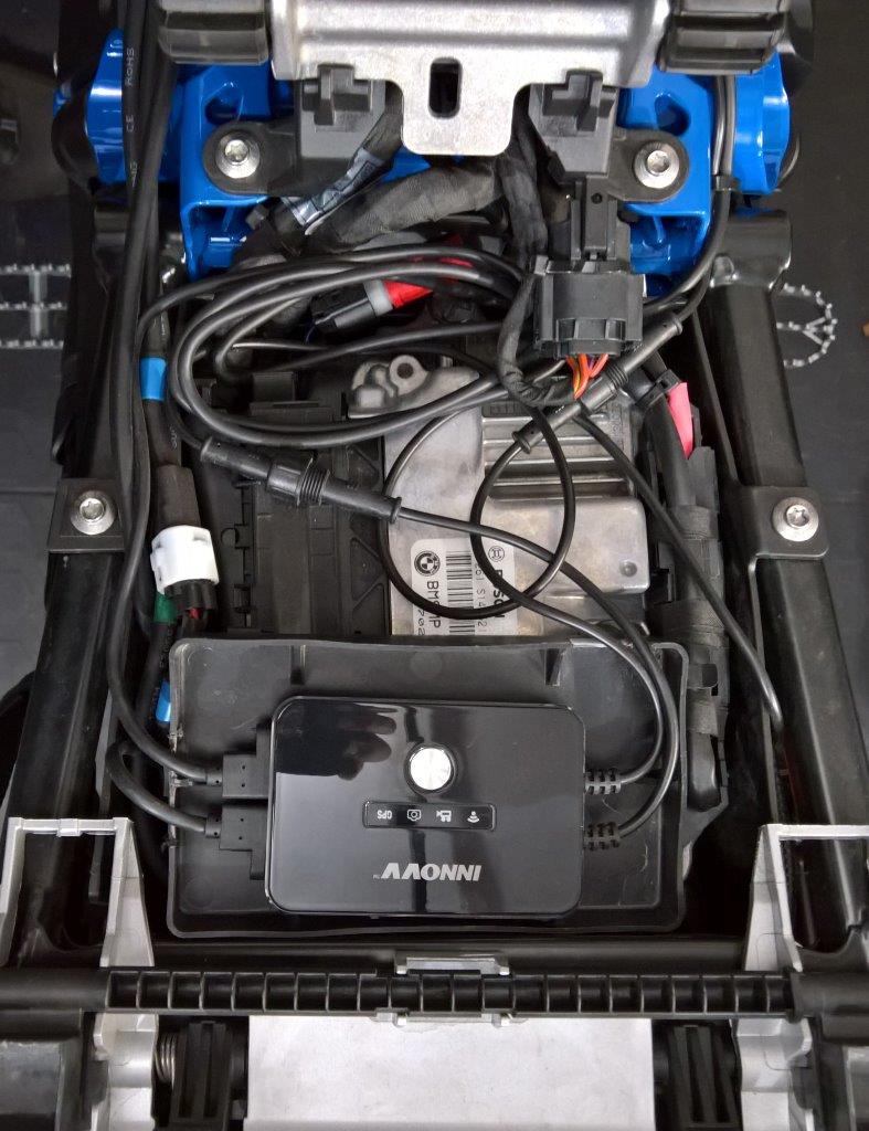 Both the camera and GPS module leads run back between the side panels and frame to the (fully usable) rear under-seat compartments that are perfect for electronic accessory installations including multiple leads and harnesses.