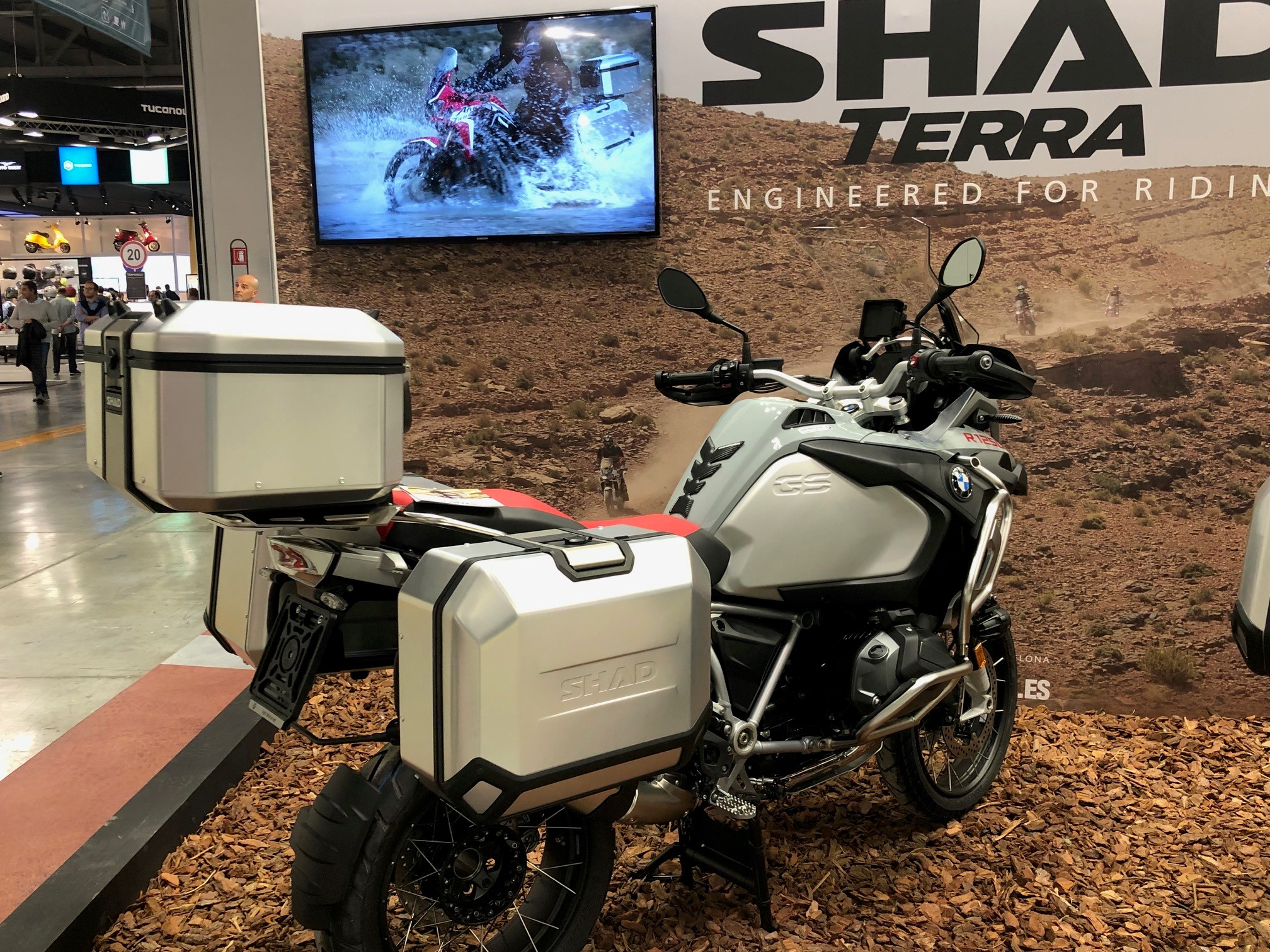 Shad’s new Terra luggage is designed to be ready for just about anything. These aluminum hard side cases and a top case offer some seriously good-sized options for adventure riders. Our contributor Bruce Cole tipped me off to these today, and he was able to get me some good images (shown in the gallery below). I was so focused on the bikes at EICMA that this wasn’t even on my radar.