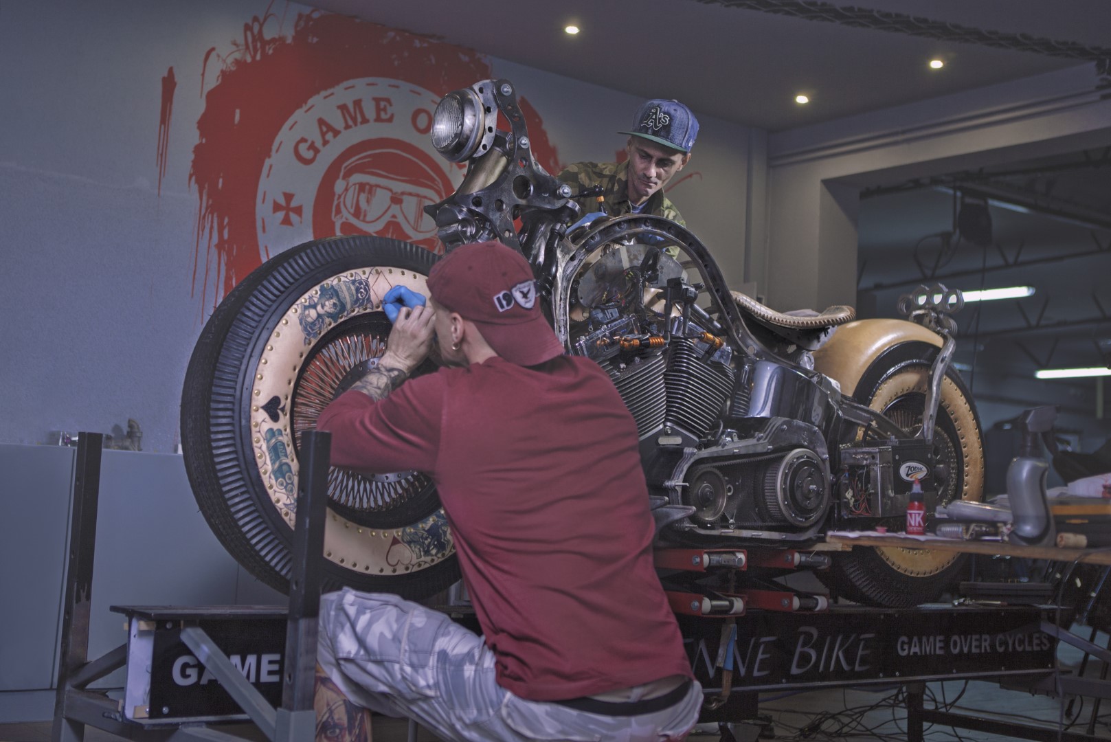 Tattoos and motorcycles go pretty well together. They have for a long time. Because of this, the guys at Game Over Cycles decided to do something special. They built the world’s first tattooed motorcycle. The custom build is based on a Harley-Davidson Heritage model. The bike has a sidecar, tons of custom parts designed to look like they came from a tattoo machine, and a lot of tattoos. It’s called The Recidivist.