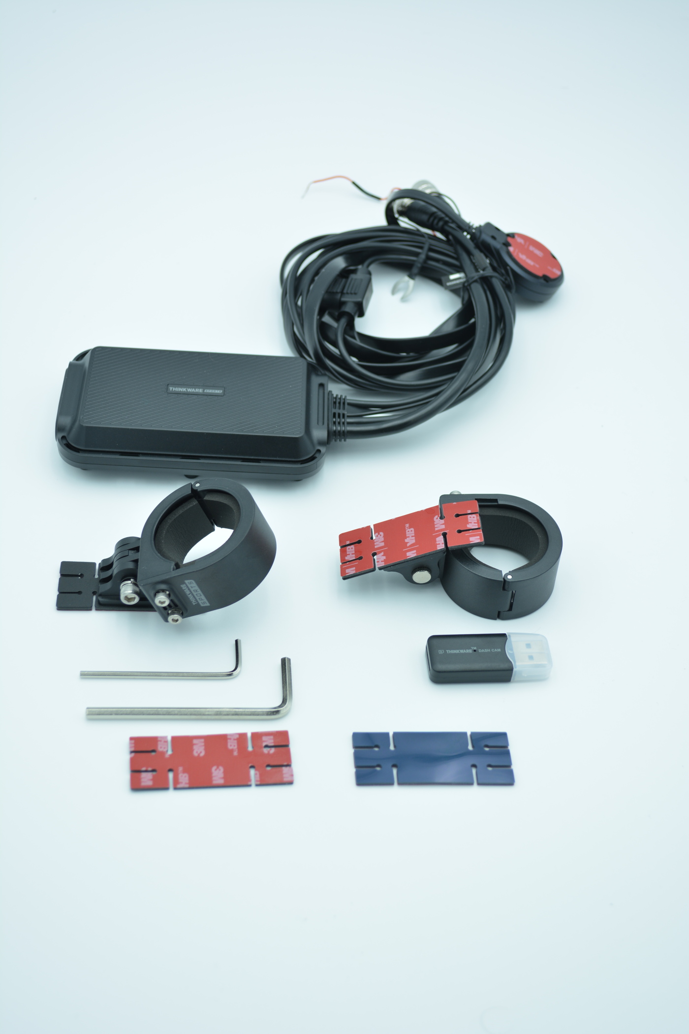 The first thing that needs to be mentioned is just how small the box that the ThinkWare M1 dash camera system comes in is. With two cameras, two camera mounts, a control box, cables, instructions, and other items in the box, you would honestly expect a decently sized package, yet the box is just under about half the size of your typical helmet box from Arai or Scorpion.