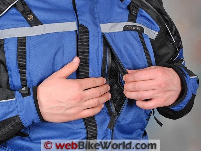 The Transition Series 3 jacket also includes a short attachment zipper for attachment to Tourmaster pants. The second half of the zipper can be sewn on to other pants if desired.