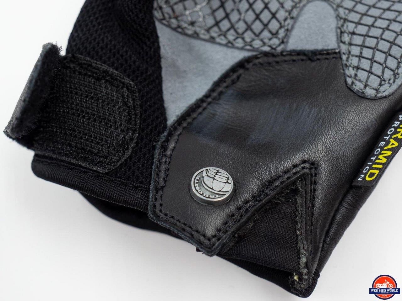 Closure at the wrist is a single leather strap which fastens via a patch of hook and loop fastener behind the thumb. This single closure is one of the reasons these gloves are better suited to the slower speeds and the softer surface of off-road riding as they could be pulled off pretty easily in a slide on the street. Speaking of those unpleasant moments, let’s have a look at the protection offered in the Comfee gloves.