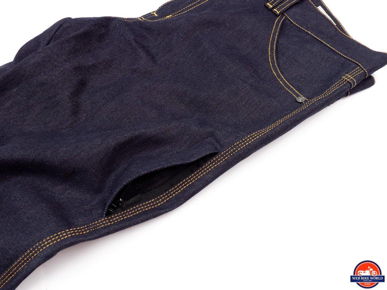 This goes along with the minimalist design to keep these jeans light, comfortable, and also keeps the cost down. The material is rated for nearly two seconds of slide time according to ECE 13595-2 which is certainly better than cotton denim which can shred away almost immediately.