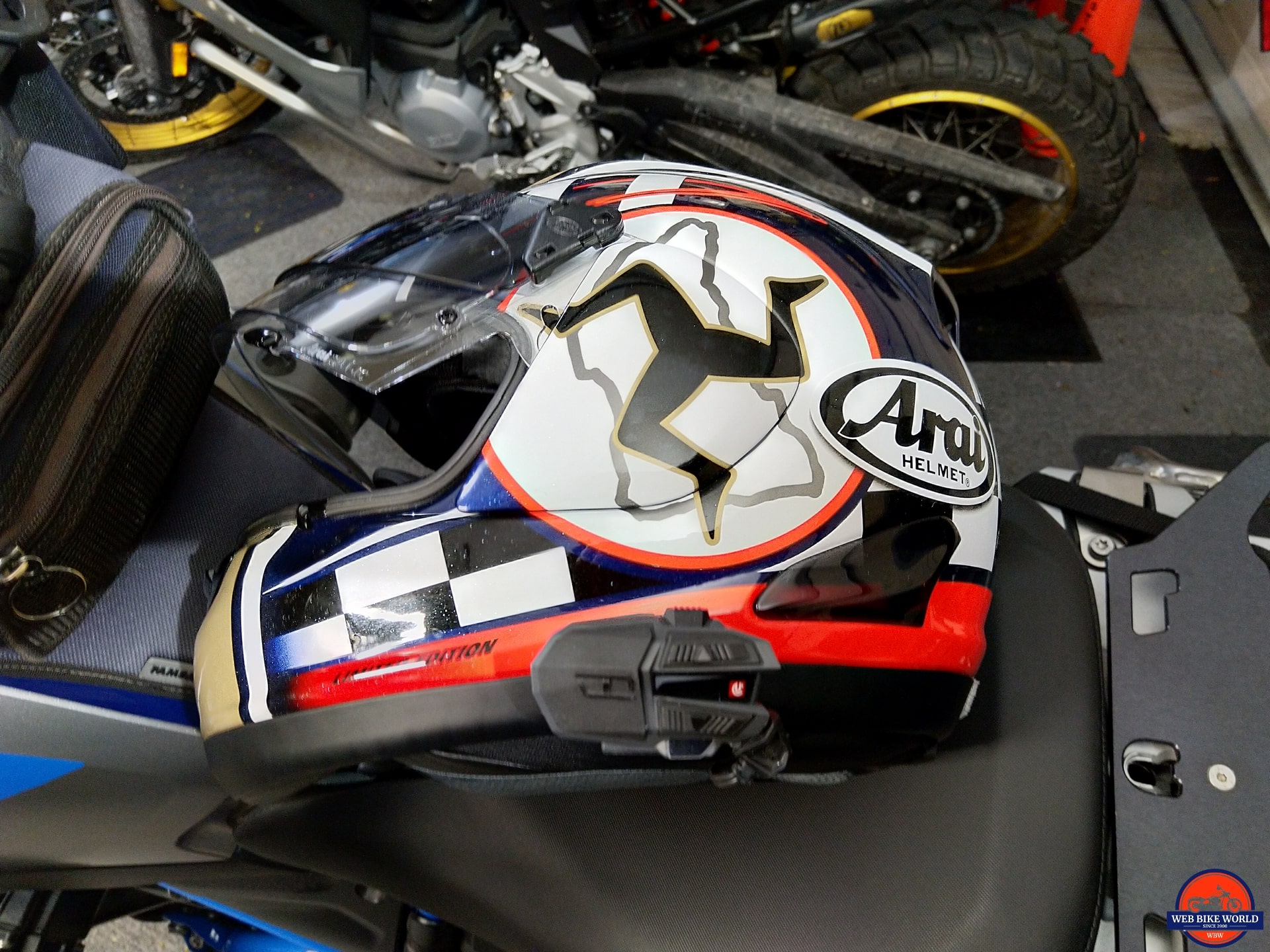 While the Motion 6 took its first assignment on a Shoe GT-Air (1st Gen), the lottery draws for the Motion Infinity resulted in the soon-to-be-replaced Arai XD4 being selected – the XD4 is/can be a noisy helmet so it seemed to be a good first candidate, and was.