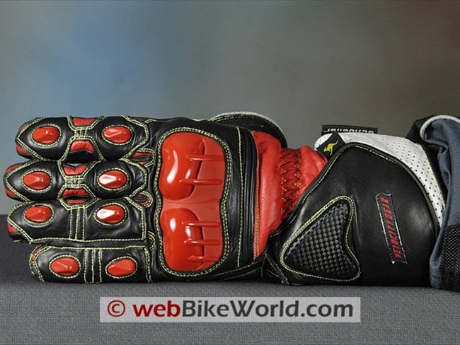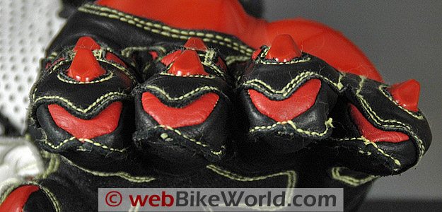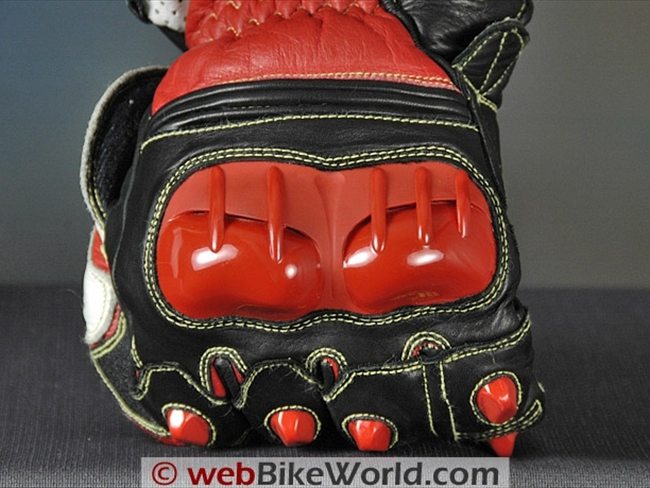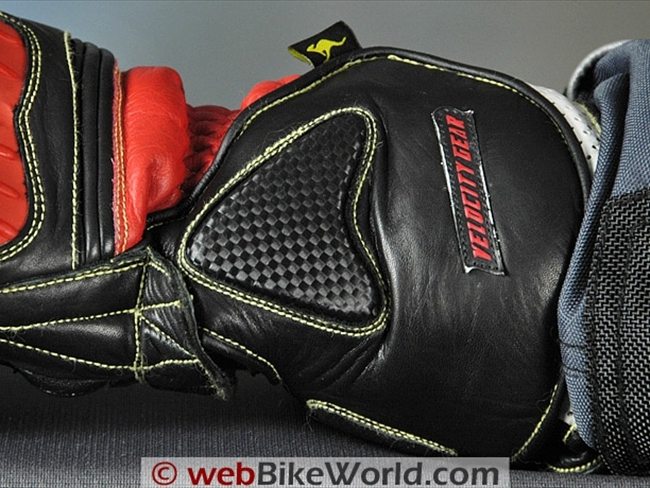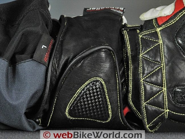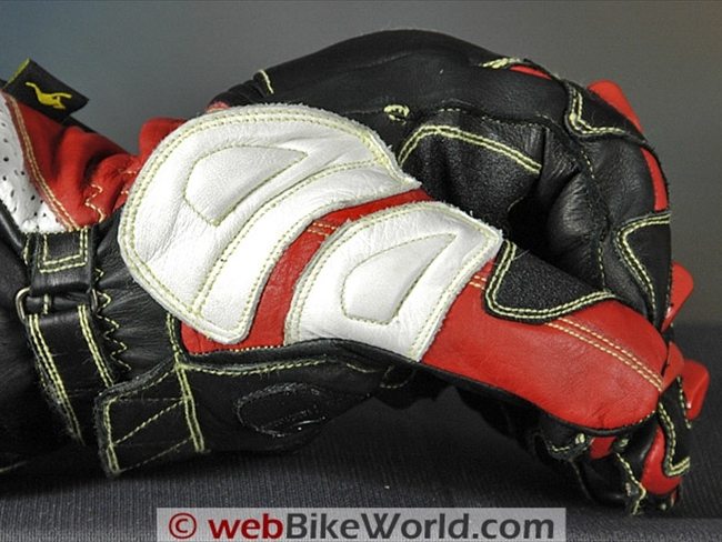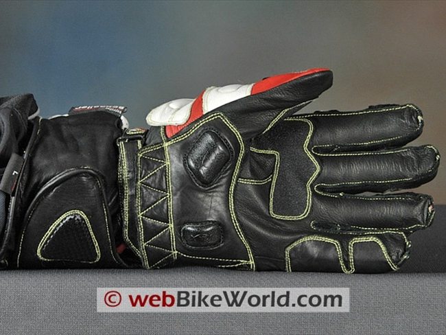 Extra sections of leather are located on the outer edge of the palm and the Knox sliders are also attached to an extra section of leather on the palm; the leather continues up around the outside of the hand to provide even more protection.