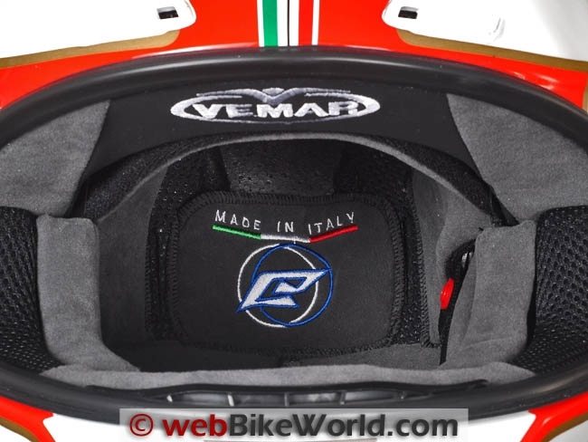 The liner has a couple of surprises I haven’t seen before, with Vemar logos embroidered under the top of the eye port and at the back of the neck roll. There is also a large and colorful “Made in Italy” script embroidered inside the liner.
