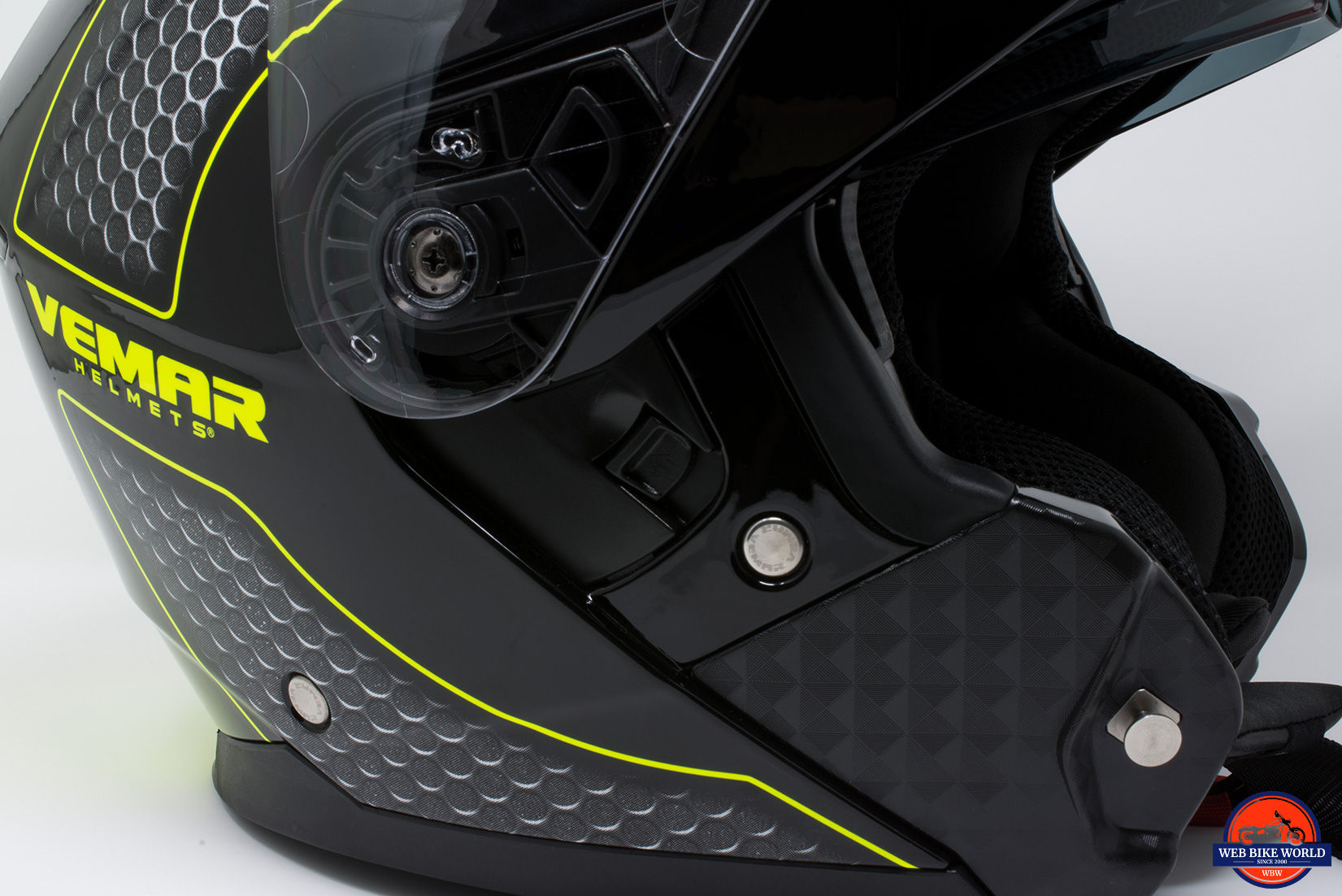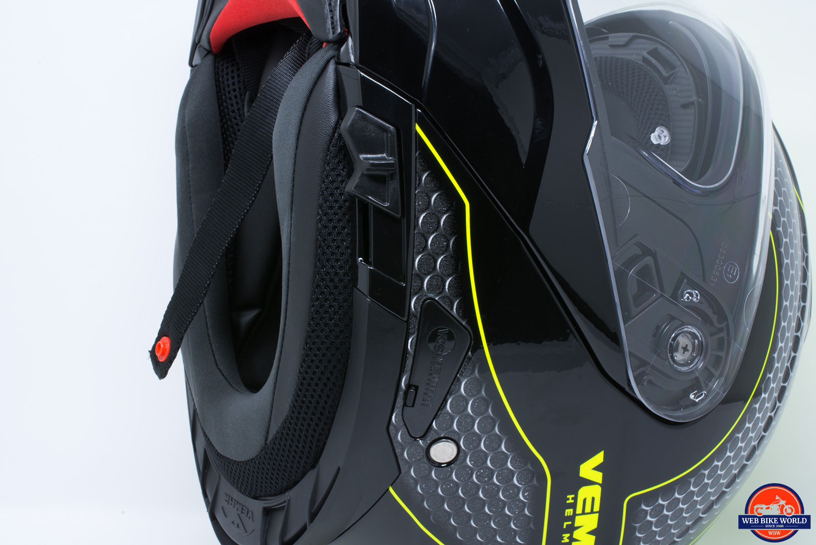Like most modern helmets, the Sharki also comes with easy intercom integration. Vemar has it labeled for the VCS com system, but it’s a universal mount and most com systems will integrate. Certainly, modern com systems from SENA/Cardo/etc. will integrate just fine (though I have not tested this).