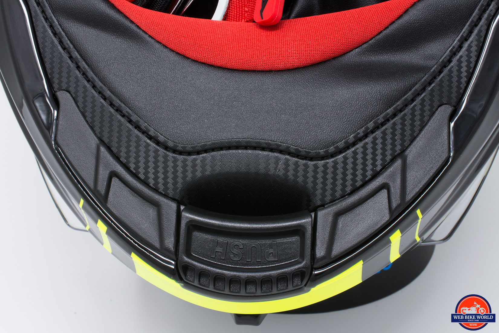 There are two exhaust vents at the rear of the helmet. Combined with the other vents, this makes up the Vemar Klima System (KVS) that is supposed to provide superior airflow and cooling. While I can’t objectively measure whether or not the KVS lives up to its claims (I don’t have a wind tunnel, after all), I can tell you that airflow is indeed quite good.