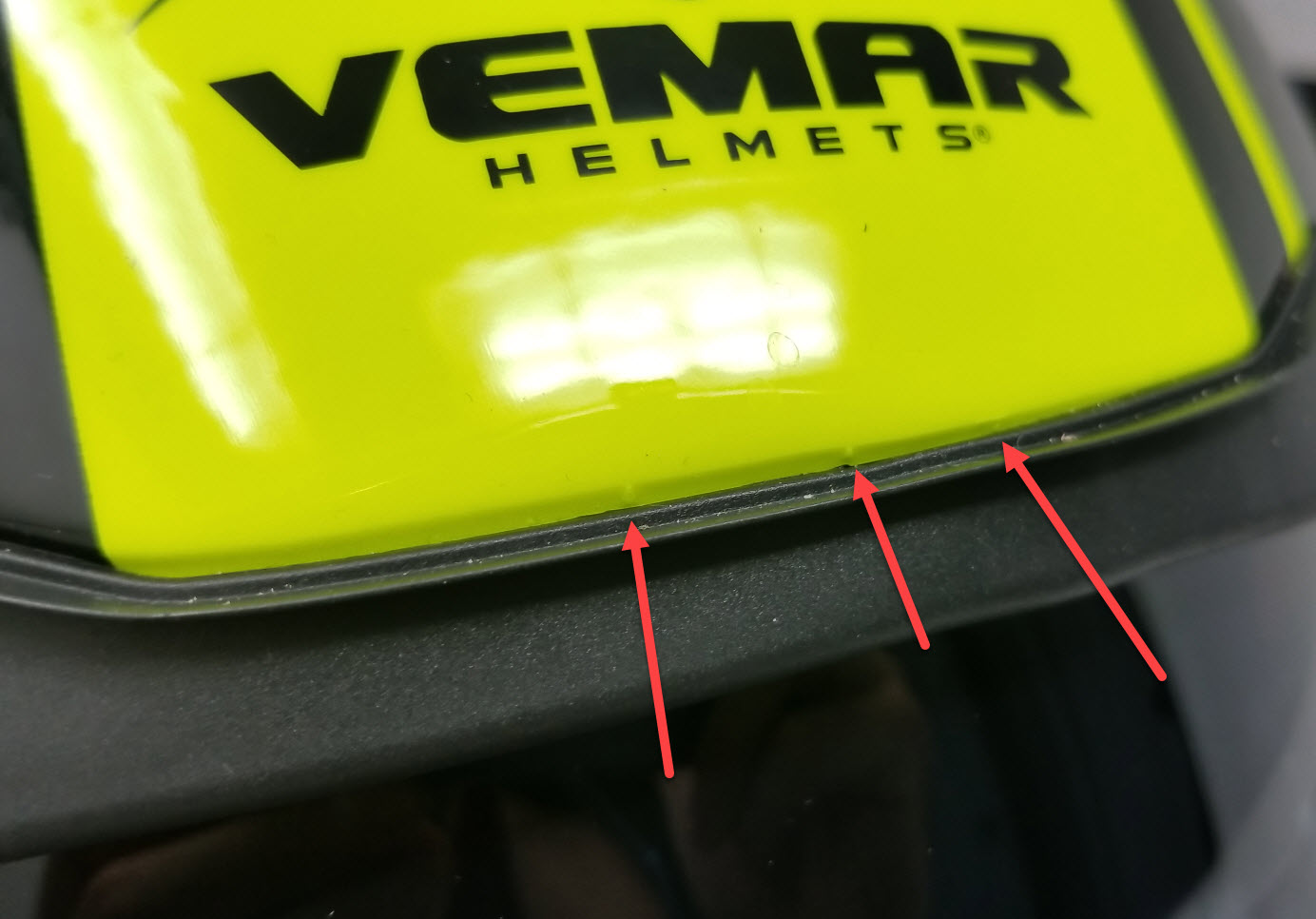 It’s hard to see in the above photo, but the angles of the Vemar logo and DOT designation are at slightly different angles.