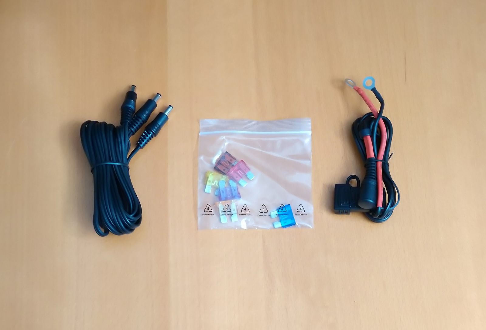 The 12V power source harness is 100cm/1m (39.3in) long with an in-line fuse holder and both the positive and negative leads terminate in ring terminals to facilitate battery connectivity. The individual glove connection leads on the 1 into 2 harness are 152cm and 172cm (59.8in and 67.7in) long; just keep them safely routed in use.